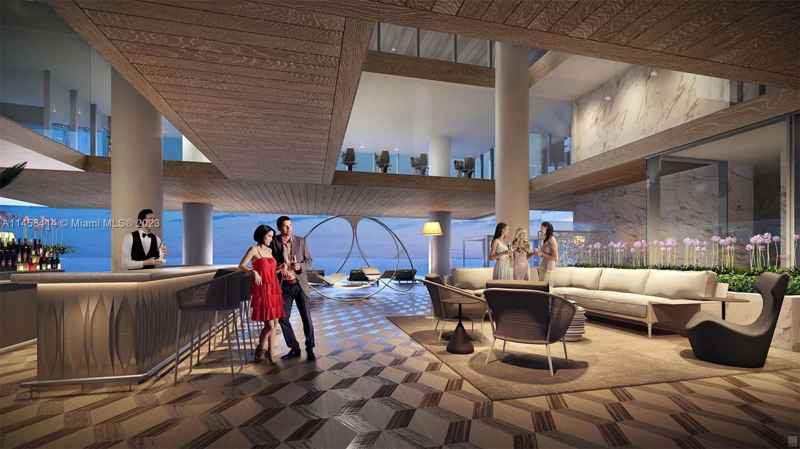 When only the best will do! Breathtaking Residence that was finished & furnished by a renowned design firm w/ no expense spared while creating this masterpiece which offers Ocean, Downtown skyline sunsets & bay views. A flow through layout w/ 10'+ ceilings & walls of glass which flood the home with natural light. 4 oversized en-suite bedrooms + a playroom which can also be an office or staff room. Features include custom millwork, custom closets, upgraded lighting & AV, private elevator, 860 SF of terraces, Snaidero kitchen w/ gaggenau appliances, summer kitchen & more. Included is a rare cabana w/ AC, kitchenette, full bath & private jacuzzi. Turnberry Ocean Club has 5 Star services w/ over 70,000 SF of amenities including a private restaurant & cafe.