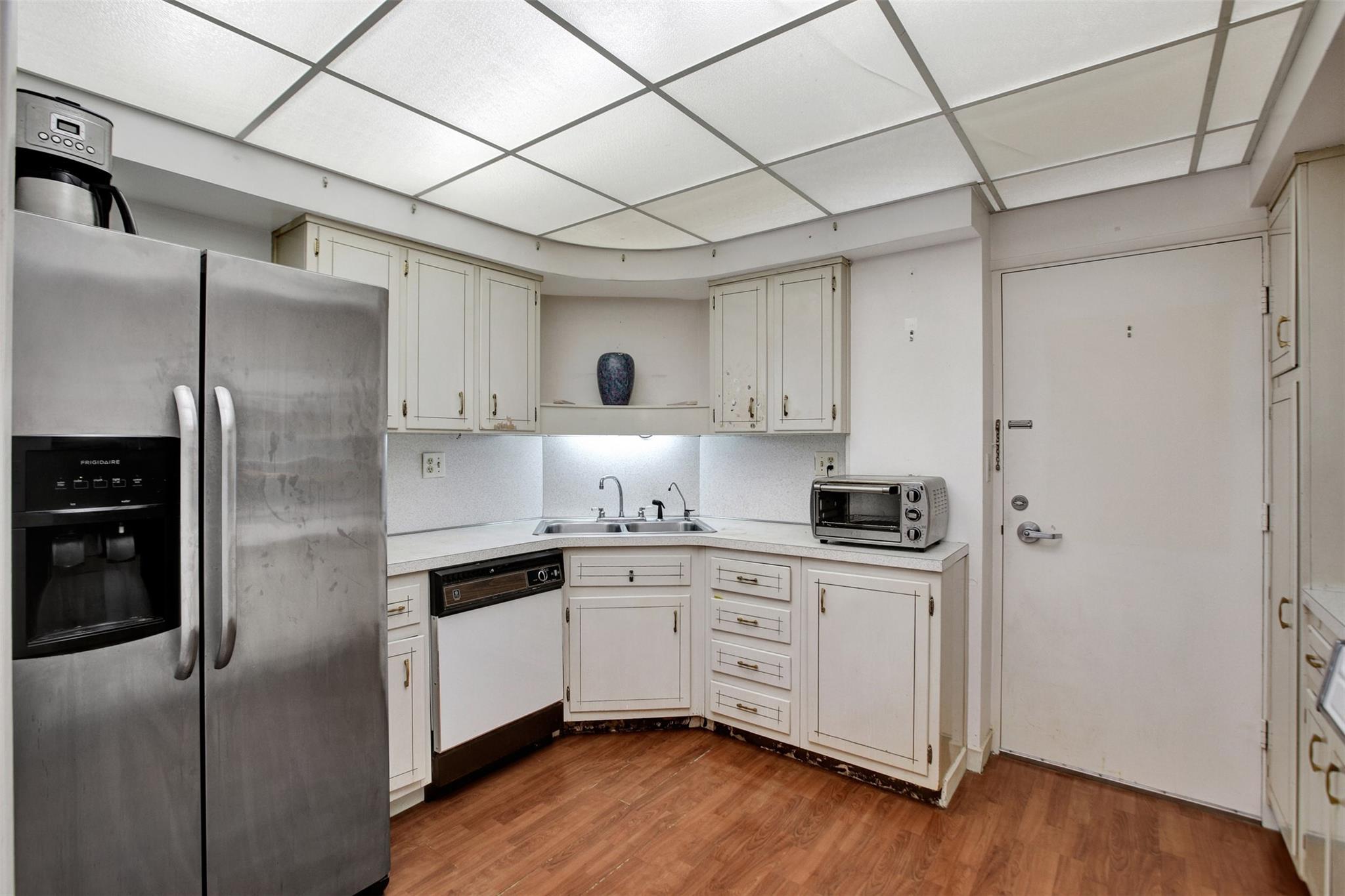 Largest 2 bedroom in the building - 1350 sq ft not including the HUGE 160 sq ft recessed balcony. BEAUTIFUL bright floor tiles reflects the natural abundance of light in this corner unit. Perfect for entertaining or enjoying quiet times. Ocean view, steps from the beach. This building just completed a 3 year project to replace and upgrade major systems. Passed the 40 + 10 year safety inspection with a new roof and fully funded reserves. All hurricane impact windows. Fiber optic internet and cable included in maintenance. Building sits on 5 acres of resort like setting surrounded by all sorts of entertainment, restaurants, shopping, golf, boating. 55+ community, cash only, no renting.