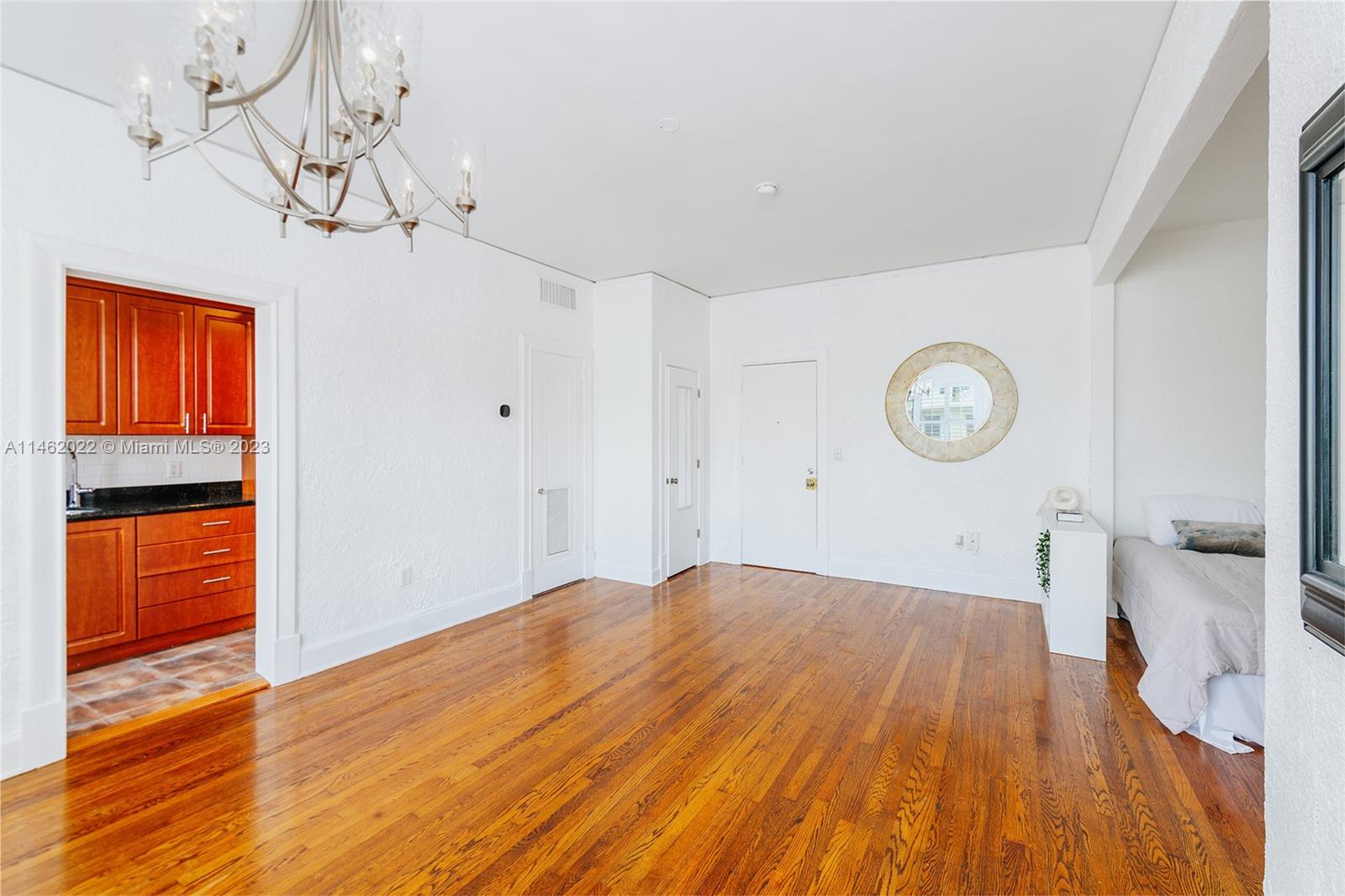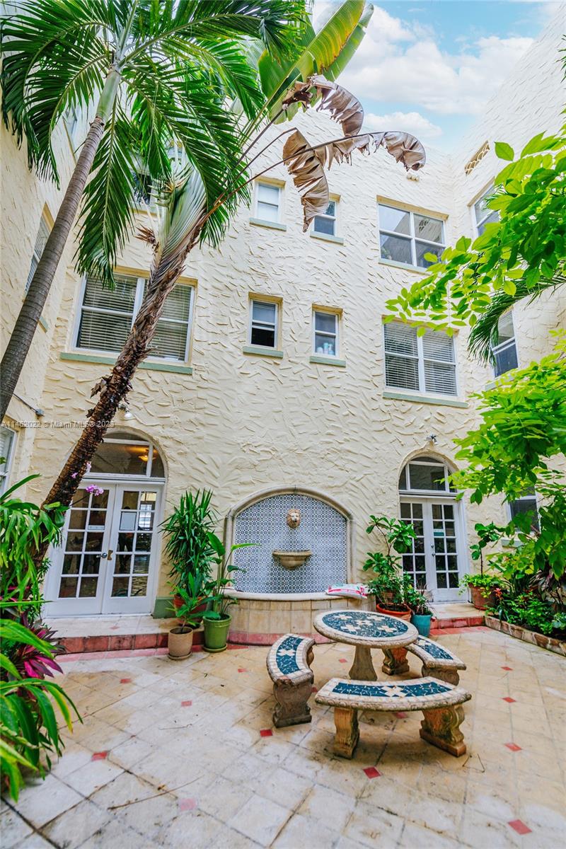 Stunning residence at the Esplanade, a perfect pied-a-terre, steps to Lincoln Road! Historic 1925 Mediterranean architecture, dramatic lobby with handpainted original pecky cypress ceiling, lush garden courtyard with mosiac tile. Oversized studio residence with sleeping alcove, features polished hardwood floors, high ceilings, oversized windows with Plantation shutters. High-end kitchen with granite and stainless. Unit is freshly painted and move-in ready! Well managed building, pet friendly, allows rentals, low maintenance. Lincoln Road, with world famous restaurants and shopping, is one block away!