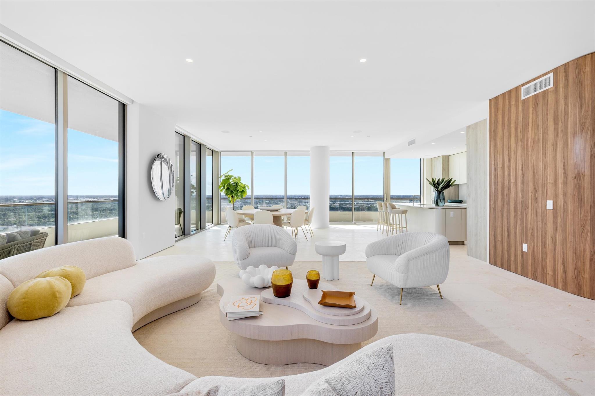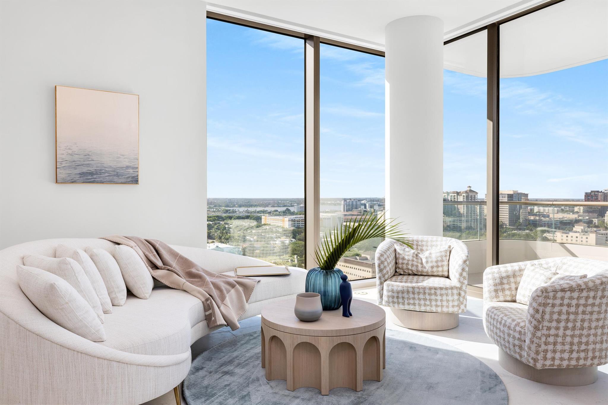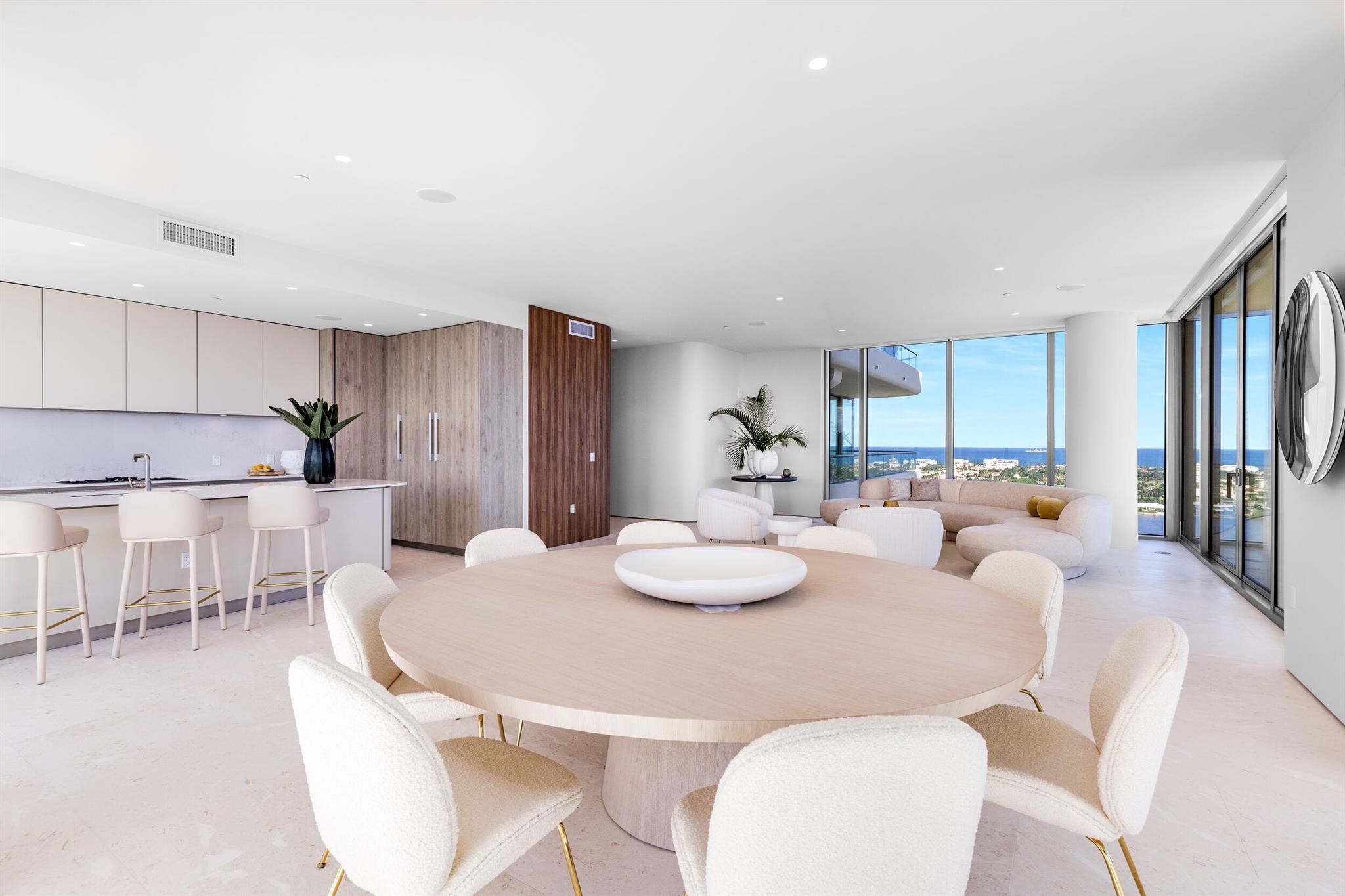 Welcome to residence 2001 at Palm Beach's newest luxury condominium, La Clara. This high-floor, premier 01-line residence spans over 4,200 total square feet and features breathtaking, panoramic views from every perspective. The 1,053 square foot terrace wraps the entire length of the unit, providing for effortless indoor/outdoor living. High-end finishes include large format limestone flooring, top-of-the-line Snaidero kitchen cabinetry, a suite of Miele appliances, polished nickel fixtures and more. This residence is packed with upgrades, including a Crestron smart home system, built-in speakers, motorized window treatments and high-end closet systems. Be the first to enjoy this brand-new, never before lived in unit for the 2023/2024 season.