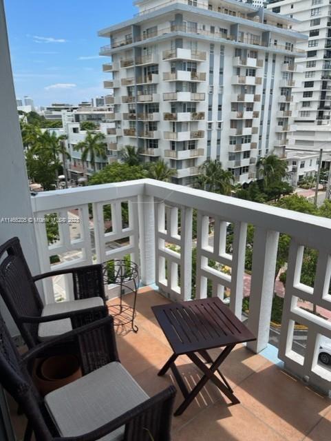 Boutique 42 unit building in the Heart of South Beach. Two blocks from the ocean, Walk everywhere. Large 1 bedroom 1 bath unit. Nice dining terrace facing east, skyline Art Deco hotel views. Glimpse of the ocean. Beautiful James Ave tree lined quiet street.