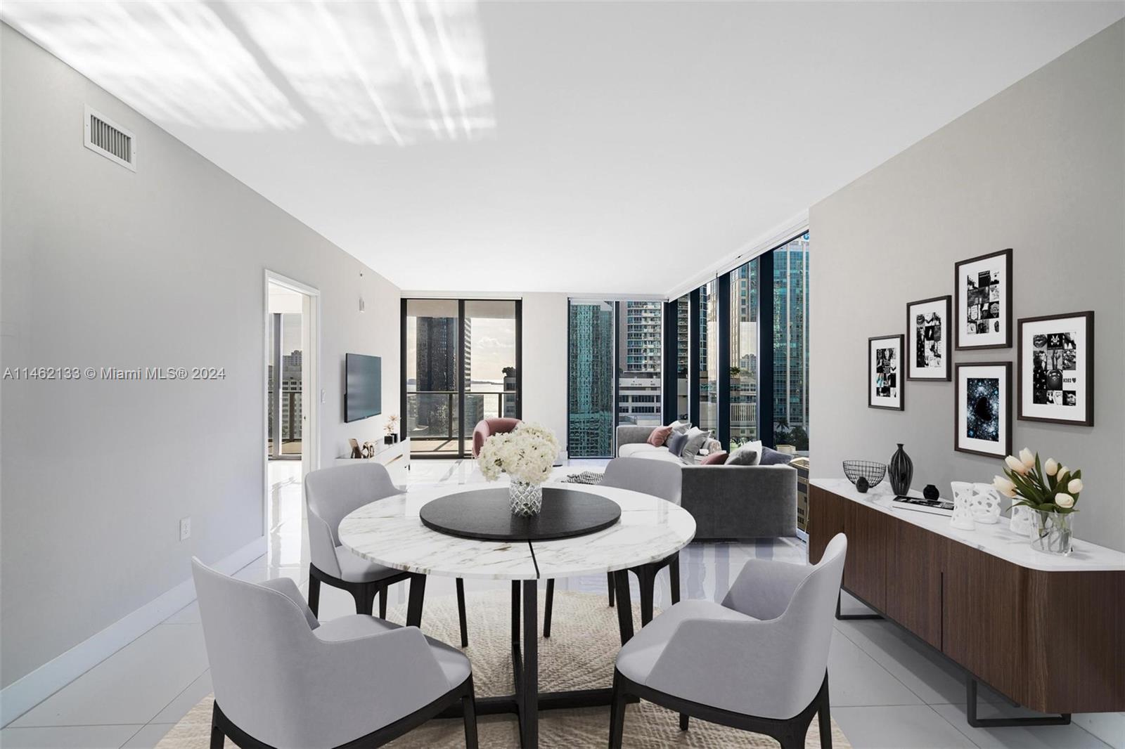 Desired corner unit with views of the Miami skyline and Biscayne Bay. This spacious 3/3 + den which can be converted into a 4th bedroom, has floor to ceiling windows throughout. A private elevator takes you directly to your unit. This luxury building has 2 floors of amenities including a rooftop pool, outdoor theater, squash court, indoor basketball court, a spa featuring a co-ed hammam, a fitness center with a double-height ceiling, an outdoor track, an arcade with a golf simulator, and a host of other fantastic features! Located in central Brickell you can walk to everything. 2 garage spaces included.