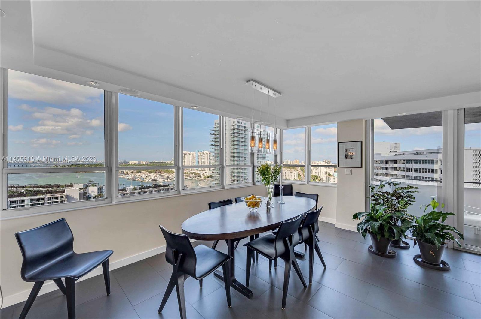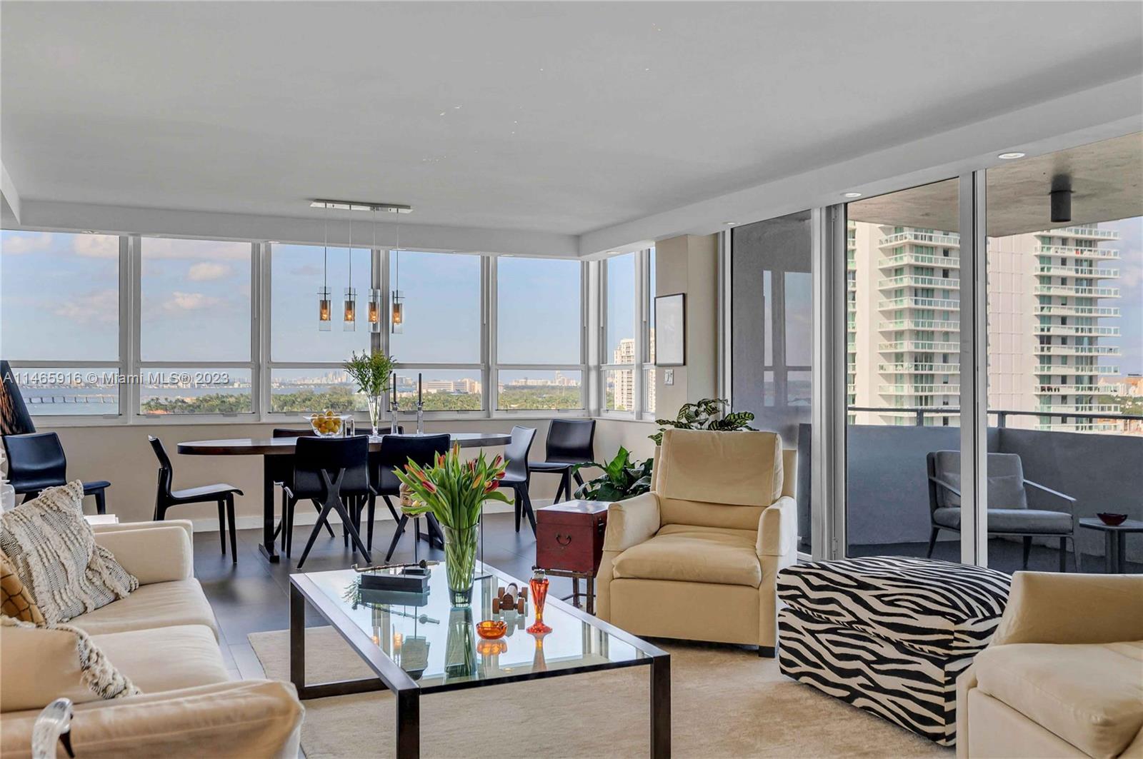 What a...View! Price! Location! NE corner with expansive views of Bay, Marina, Belle Isle Park, & SoBe skyline. Thoughtfully renovated with quality materials & finishes. Custom kitchen equipped with Sub Zero refrigerator, Wolf double ovens/induction cooktop, microwave drawer, & wine cooler. Large matt grey porcelain tiles throughout, impact windows/doors with powered shades, PLUS hardwired internet & speakers for uninterrupted work & play. Both bedrooms have ensuite bathrooms with ample storage. Main has separate soaking tub & oversized shower. Large open balcony adjacent to living room perfect for sunrises, afternoon cocktails, or just enjoy the breeze & views. Updated building with reserves. Completed updates include hallways, internet, fire sprinklers, EV charging, & gym. Lobby underway