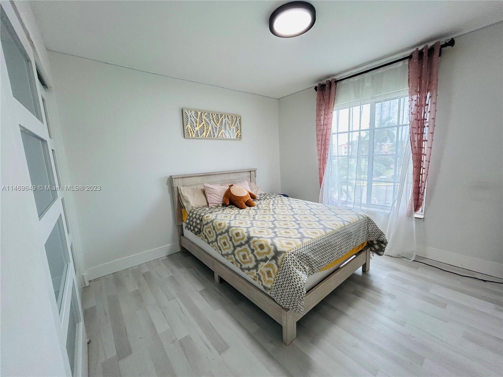 Fantastic Corner Unit in Doral Gardens II Community. This apartment has been tastefully remodeled. The Unit features a new Open Concept kitchen with QUARTZ countertop and stainless-steel appliances. Master bedroom with walk-in closet and bathroom inside, ceiling fans with remote control, and new vertical blinds. Recessed lights are installed inside the entire property and can be controlled by phone or Alexa home pod. New electrical system. New A/C duct. Balcony overlooking the garden, lake, and street view. Community offers clubhouse, fitness center, community pool, playground, and tennis courts.