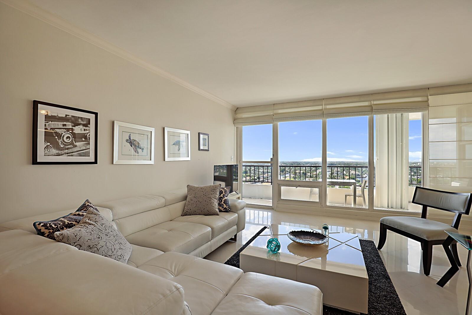Amazing vibe, view & setting. With nearly 2000 sq ft of elegance this spacious 2/2 high-rise condo will take your breath away. Located in the heart of Ft Lauderdale & right on the Beach. Features incredible sunset & intracoastal views from its enormous private balcony. Right next to semi-private elevator with only two apartments per floor in this "E" tower. Large porcelain tiles throughout with soft premium laminate flooring in the bedrooms. In unit laundry room & washer/dryer. Private & secure storage included. Assigned covered parking & plenty of guest spaces available as well. This well maintained condominium is loaded with all the amenities you would expect from at top notch building. These include pool, gym, sauna, activities room, business center & more. Furniture included.