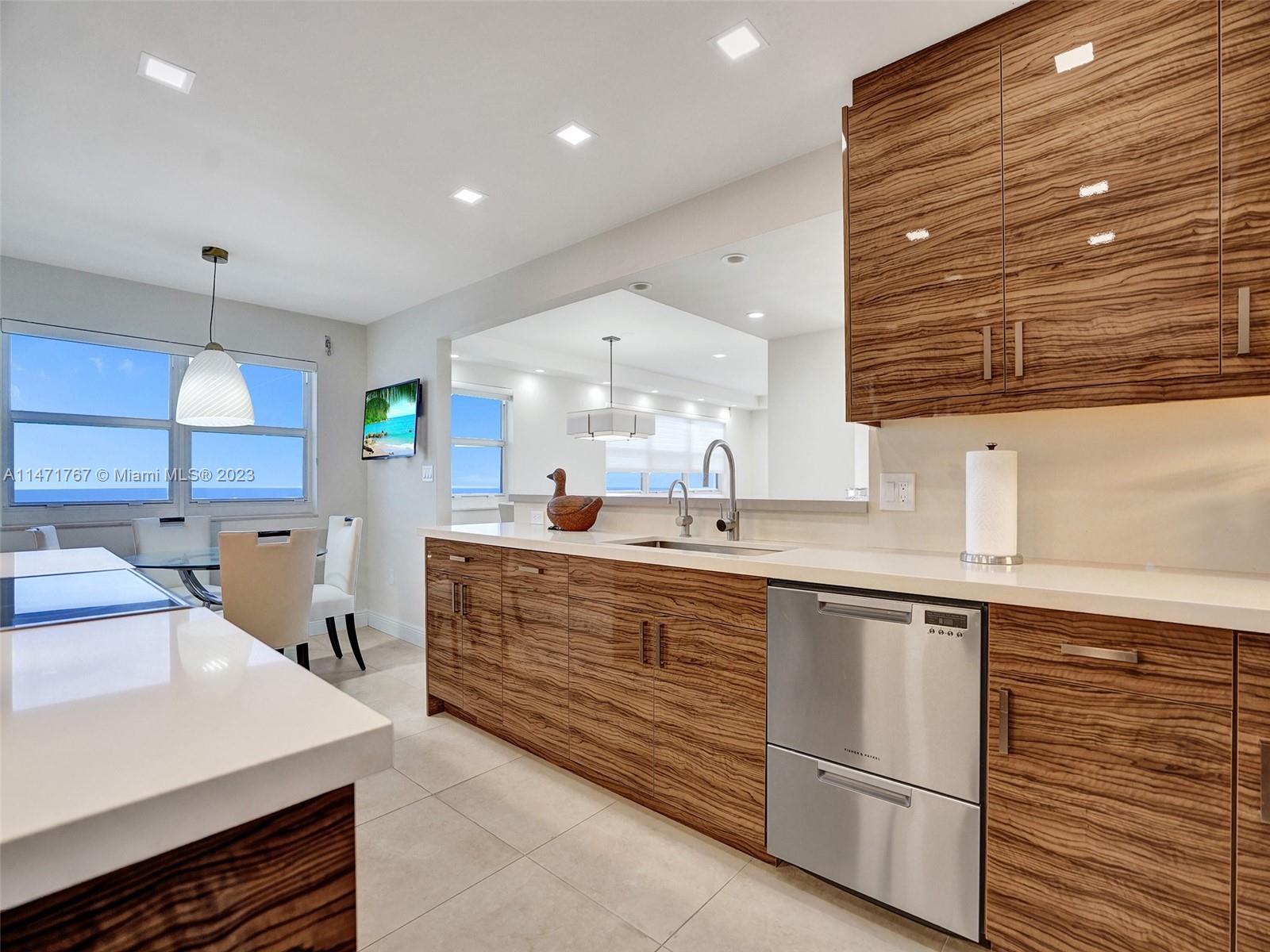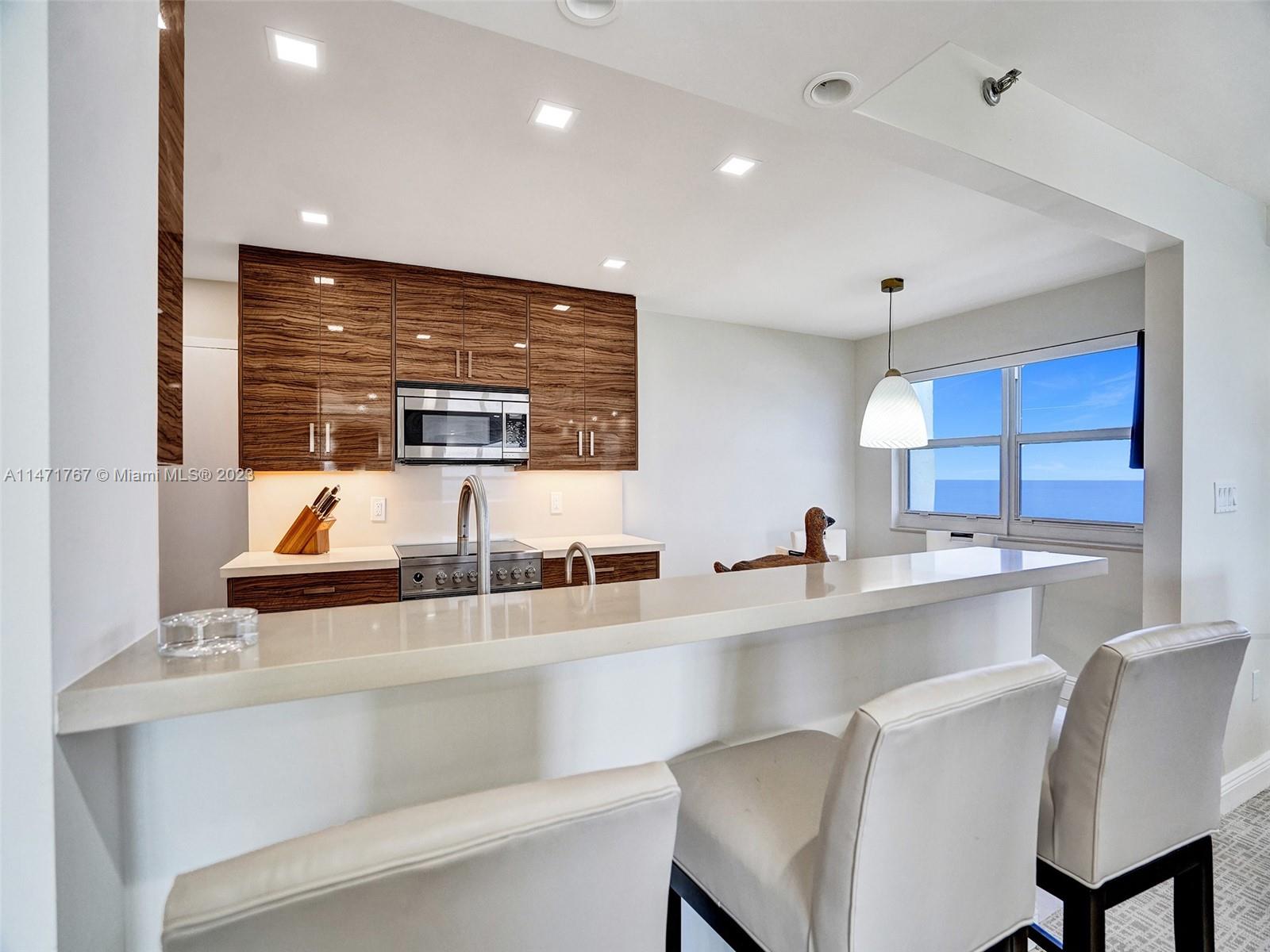 Discover your dream residence in this SE facing corner unit with breathtaking ocean views from every room. This exquisitely renovated, designed and furnished condo features 1,990 SF,three bedrooms and three baths. A sophisticated oasis includes a dream kitchen with Fisher and Paykel appliances & an eat in breakfast nook overlooking the beach. Every inch of this condo has been meticulously curated by a pro interior designer resulting in a harmonious blend of aesthetics, comfort and functionality. LED lighting and impact windows throughout. Move in Ready. Amenities include covered garage parking, 24 hour security, parklike setting, pickleball, tennis, cafe and much more. Conveniently located 15 minutes from FLL. Schedule a viewing today and embark on the next chapter of your life in Style.