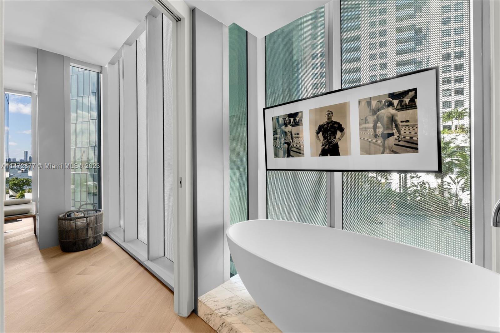Welcome to this waterfront South Beach residence by Ateliers Jean Nouvel, offering direct views of Biscayne Bay with breathtaking sunsets. This exquisite home features a private foyer, an open layout with floor-to-ceiling windows, custom wood floors, a kitchen with a cantilevered marble island, Gaggenau appliances, a custom marble wine rack, & Poliform closet & kitchen elements. An indoor/outdoor oasis w/ a unique staircase providing direct pool access and expansive private garden terraces for each room. Custom bathrooms boast stone-tiled walls, a floating wood vanity, & Calacatta gold showers. Nouvel seamlessly engineered environmental & innovative climate resilience into the building’s architecture. Amenities include 24-hour concierge, pool service, sun deck, residents' lounge & more.