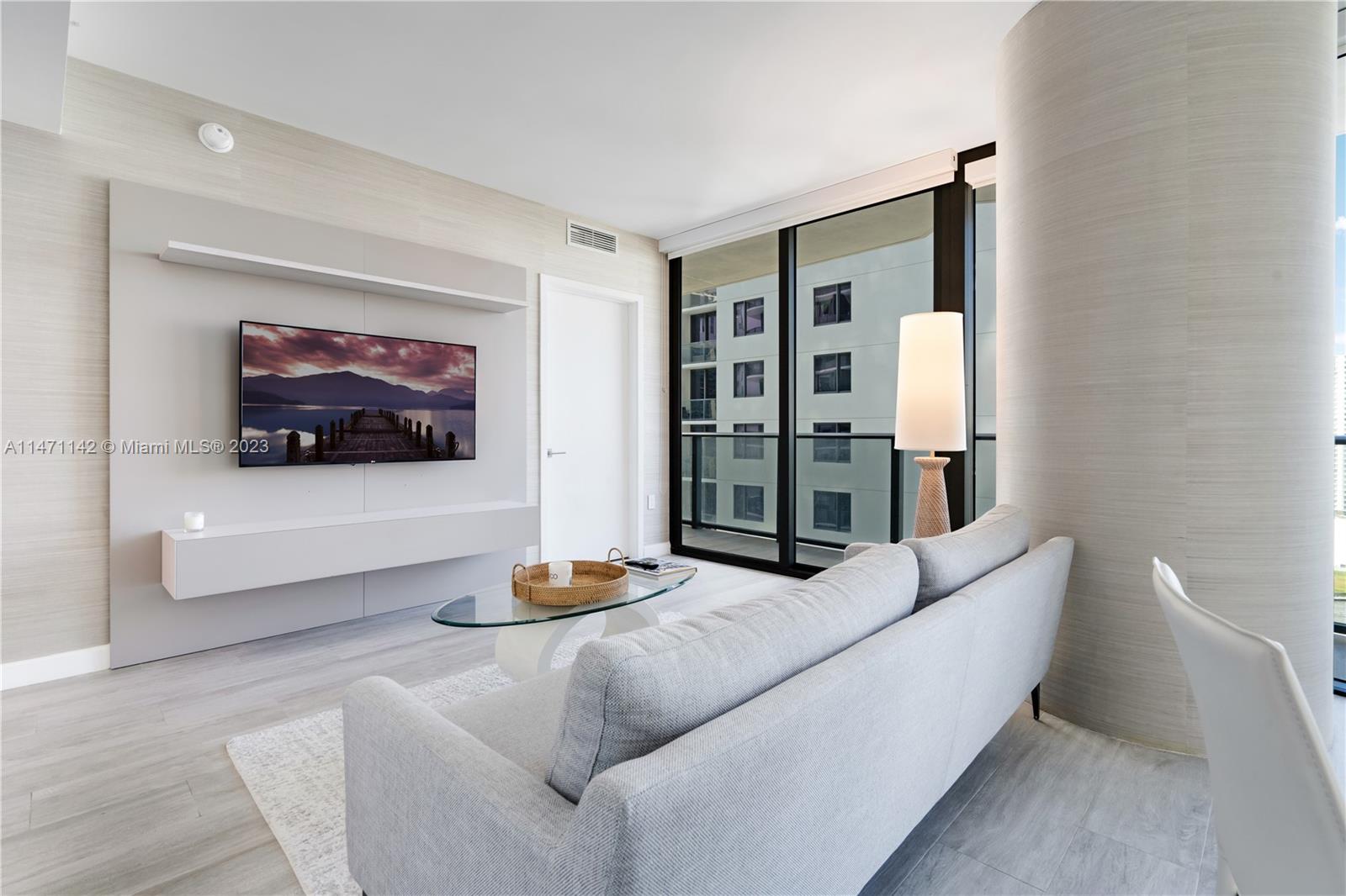 Exquisite 2-bed, 2-bath , featuring a den with a built in storage space. Breathtaking views of the Bay and the Miami skyline from your wrap-around balcony. This unit has been carefully designed with stunning wallpaper & numerous upgrades, including tile work on the balcony. Floor-to-ceiling windows, and top-of-the-line stainless steel appliances. Resort like amenities , offering residents access to a fitness center, 24/7 concierge services, heated pools (rooftop pool), a jacuzzi, sauna, steam room, business center, media room, children's playroom, and a theater. Conveniently located on the eastern side of Brickell, close proximity to Brickell City Center and the financial district, shopping, dining. The sale includes all the beautiful furniture, making it a turnkey opportunity.