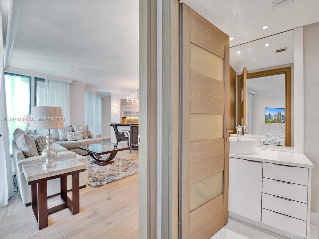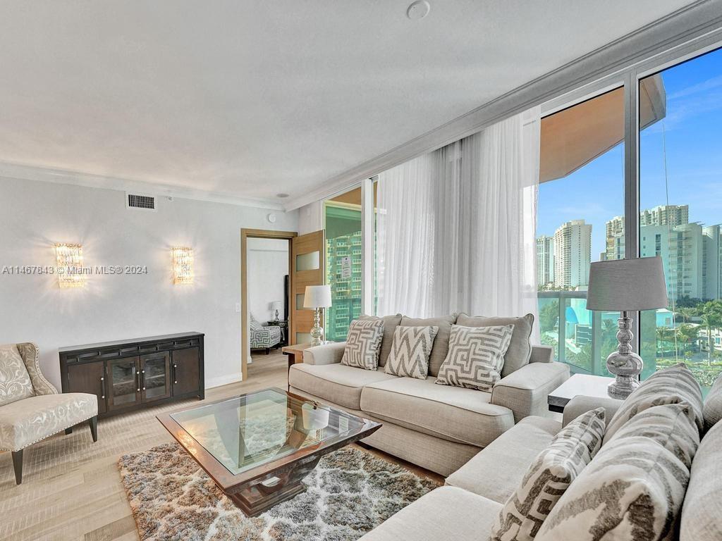 WOW! A Perfect 10! Completely renovated & new contemporary residence in fabulous Hidden Bay. This unit boasts 3 terraces and water views of intracoastal, ocean, & marina throughout. Split 2 bedroom/2.5 bath plan with large utility room. Furniture included. The finest finishes include; new open kitchen with Italian cabinetry, high-end appliances Bosch & Fisher, & Paykel, all new modern interior doors, and electric shades throughout. Stunning new master bath with backlit marble, enclosed glass shower, Toto toilet, closet systems. Nothing original remains! A gem! ***$28,000 SPECIAL ASSESSMENT PAID BY SELLER*** Enjoy 5* amenities, clubhouse, 2 story spa/gym, tennis, pickleball, billiards, 2 pools, private marina, BBQ, concierge, valet, security, and more!
