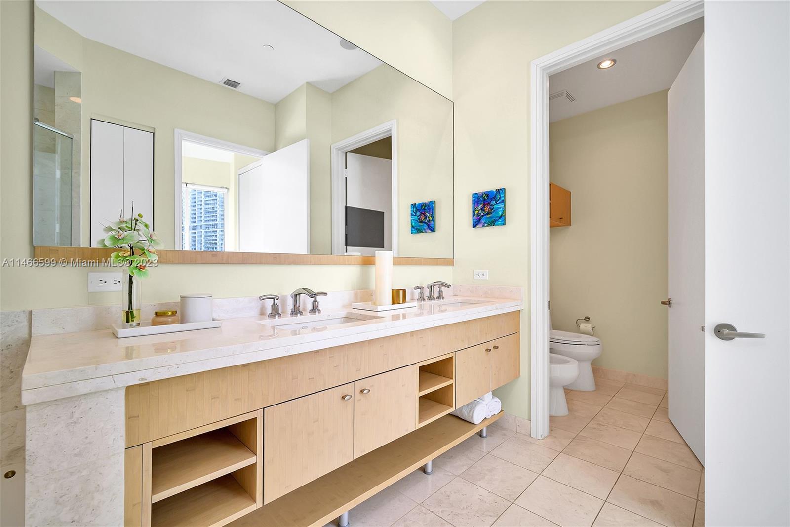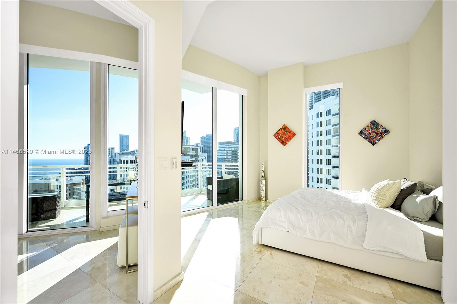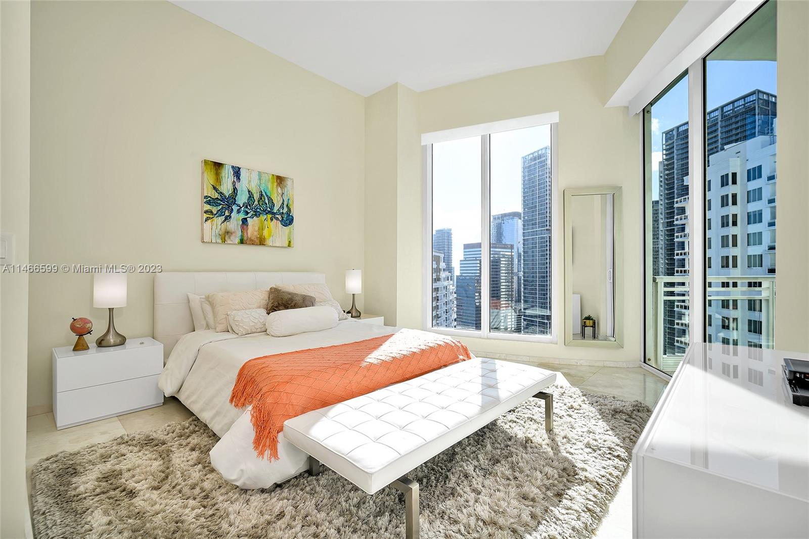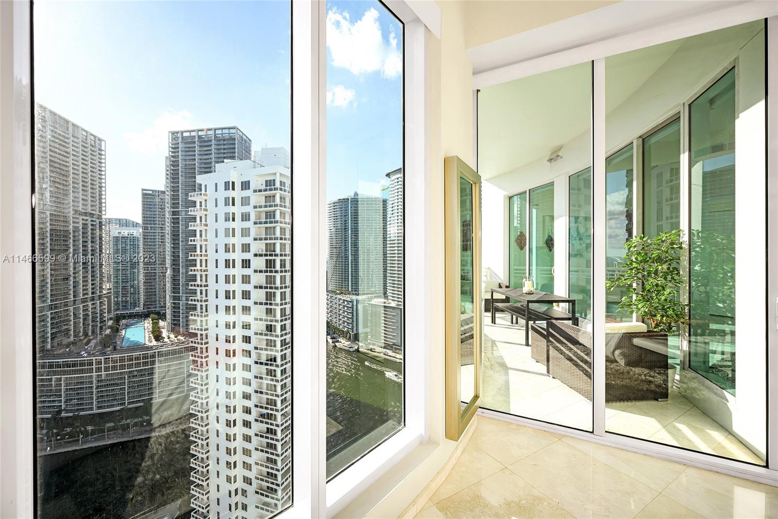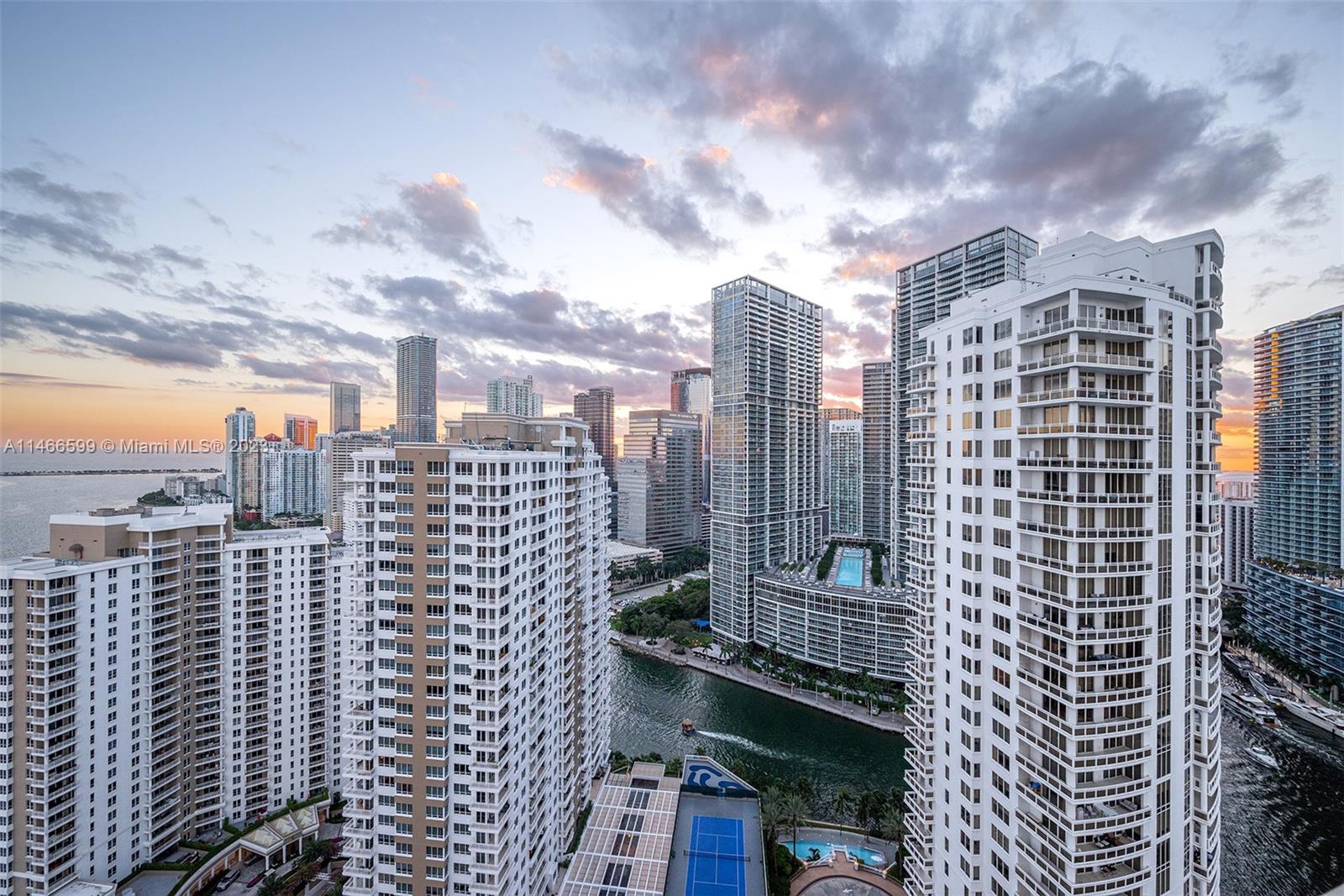 Set in the world-class gated island of Brickell Key, this 27th floor 2/2.5 split floor plan unit at the Asia Brickell Key can be yours. Just east of the Miami Brickell area, it offers a waterfront ultra-luxurious lifestyle, private elevator w/bio-metric secure controls that opens to a foyer, 12' ceilings & marble floors. The balcony overlooks the skyline, river & Biscayne Bay. Others: smart home, floor-to-ceiling windows, Subzero fridge, Miele kitchen, Bosch W/D & custom closets. Primary bath w/marble shower, Jacuzzi & WC. An extra storage room & 2 tandem garage parking spaces. Amenities: 24hr security/front desk, lobby, fitness center, pools, sauna, racquetball/basketball, tennis court, valet for guests, meeting room. Partially furnished by Artefacto. Only 1 owner rarely used as 2nd home.