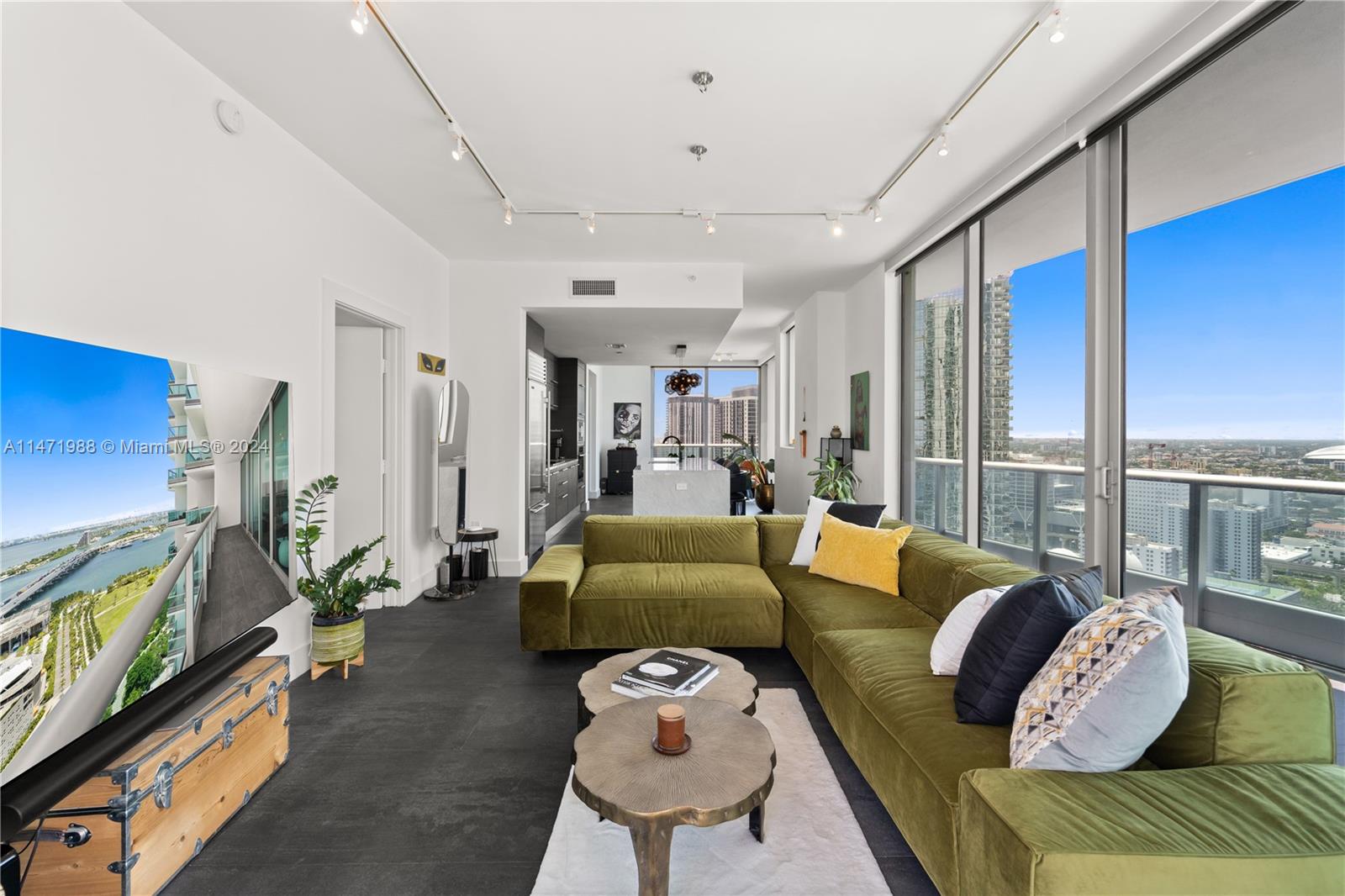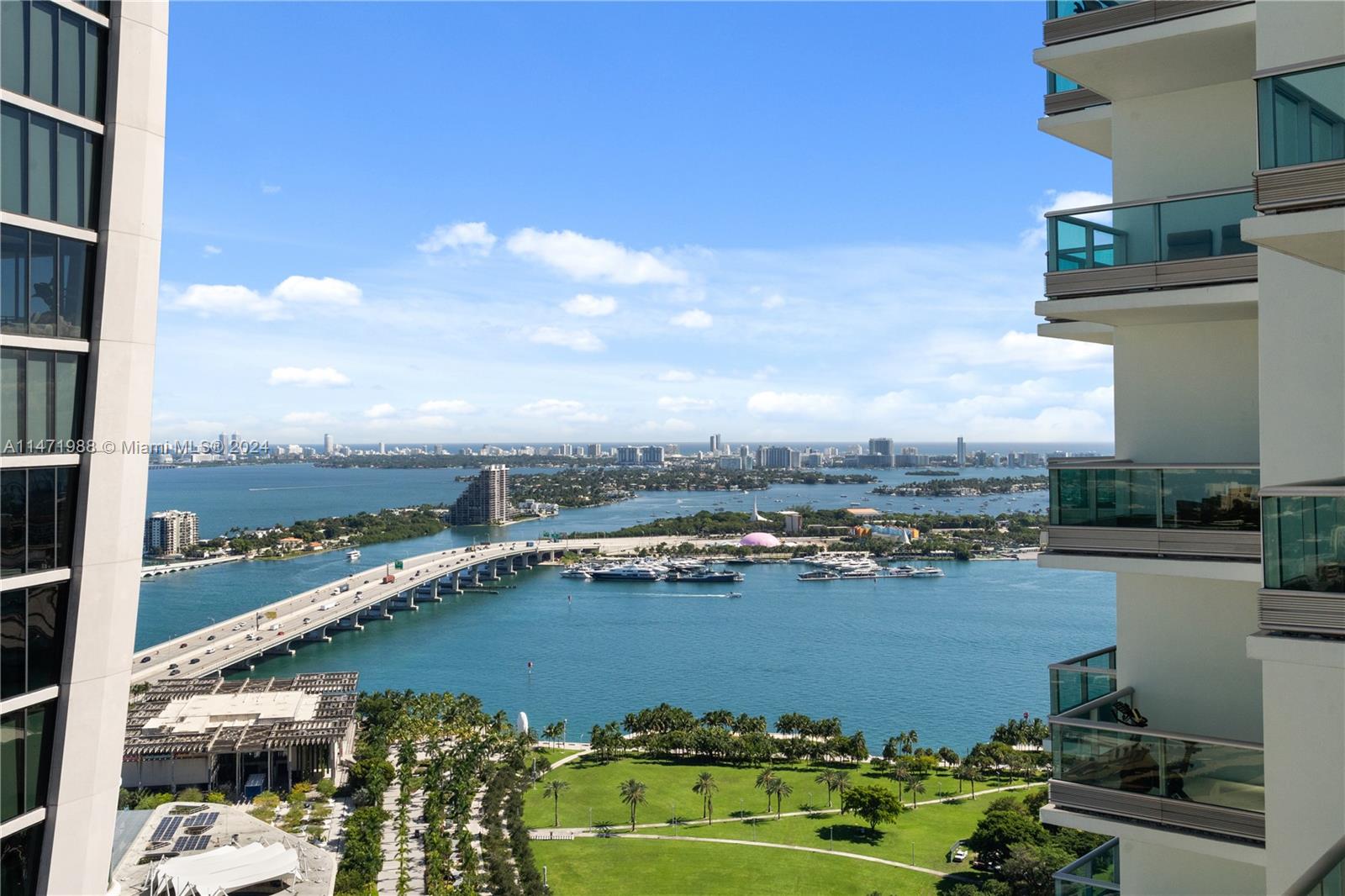 Your new sky home at 900 Biscayne! This 2 bed, 2 bath corner residence boasts bay & skyline views. 1300 Sq Ft of high-end living on Biscayne Blvd with airy open-plan living & dining, floor-to-ceiling windows with new motorized blinds, modern kitchen with new alkaline filter & new Miele washer/dryer, spacious bedrooms & stylish bathrooms. Take in the stunning scenery from the wrap-around balcony. The building offers top-notch amenities: gym, pool & 24-hour security. Prime location with easy access to Miami's best dining, shopping & entertainment.