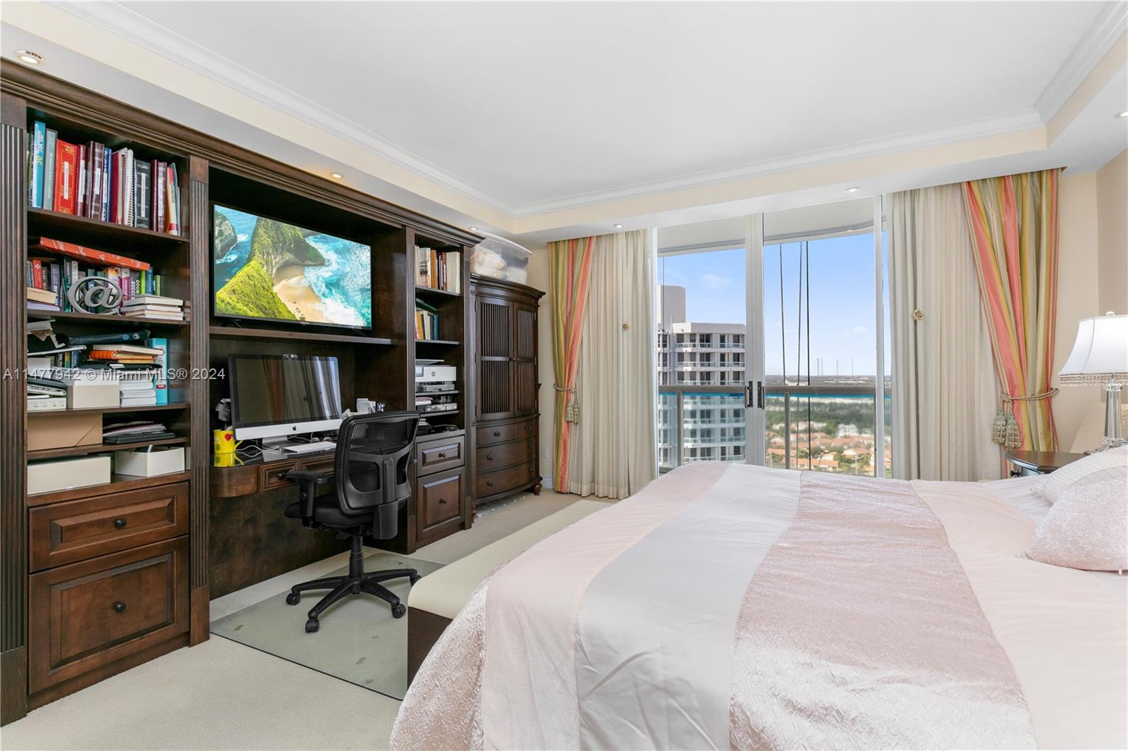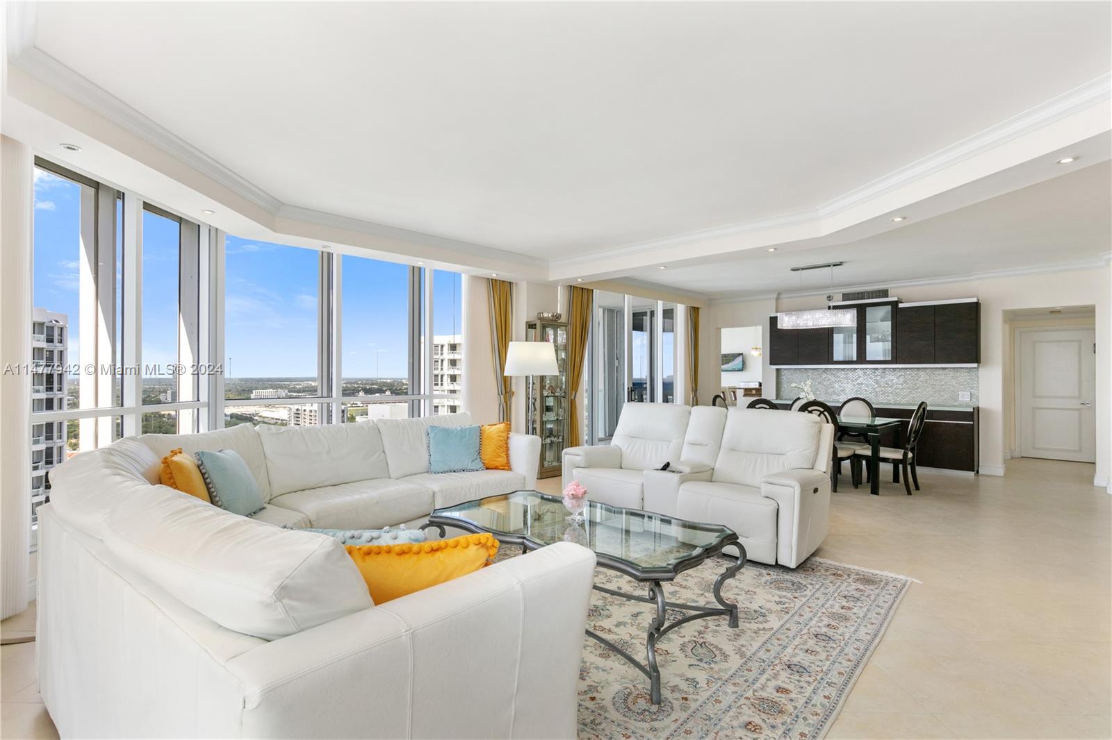 Luxury corner 2 Bed/2.5 Bath lower penthouse residence, Atlantic II at The Point a secure, tranquil 36-acre oasis. Foyer leads to open living/dining area is perfect for entertaining with panoramic views of city, intracoastal, ocean from 3 balconies features motorized window treatments, 9-foot ceilings with crown molding, ample natural light. Primary bedroom includes walk-in closet, and bedroom with ensuite bath. 24-inch Porcelain floor, carpeted Primary bedroom. U-shaped kitchen has a breakfast area overlooking marina. Hurricane shutters. Completely renovated building features lobby, new roof, building facade, and balconies includes 24-hour security, 2 parking spaces, valet. Maintenance includes 25,000 sq. ft. spa and fitness center, outdoor café, cultural events, 3 pools, tennis courts.