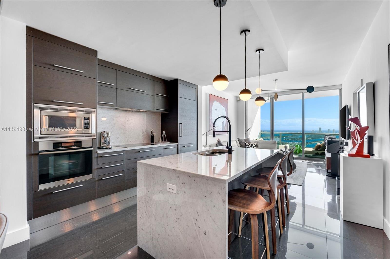 An impeccably designed 1 Bed + Den/ 2 Bath condo at 900 Biscayne Bay with 912 interior square feet, 9-foot-8-inch-high floor-to-ceiling glass windows, motorized shades, and a spacious terrace overlooking Biscayne Bay and the Atlantic Ocean from the 46th floor. Building amenities include a resort-style pool, lap pool, hot tub, fully-equipped fitness center, men's and women's sauna and steam room, movie theater, BBQ area, clubroom, full-service concierge, valet parking service, and a children's playroom. Within walking distance of the Miami Heat Arena, Bayside Marketplace, Maurice A. Ferre Park, the Adrienne Arsht Center for the Performing Arts, and shops and restaurants at Miami Worldcenter.