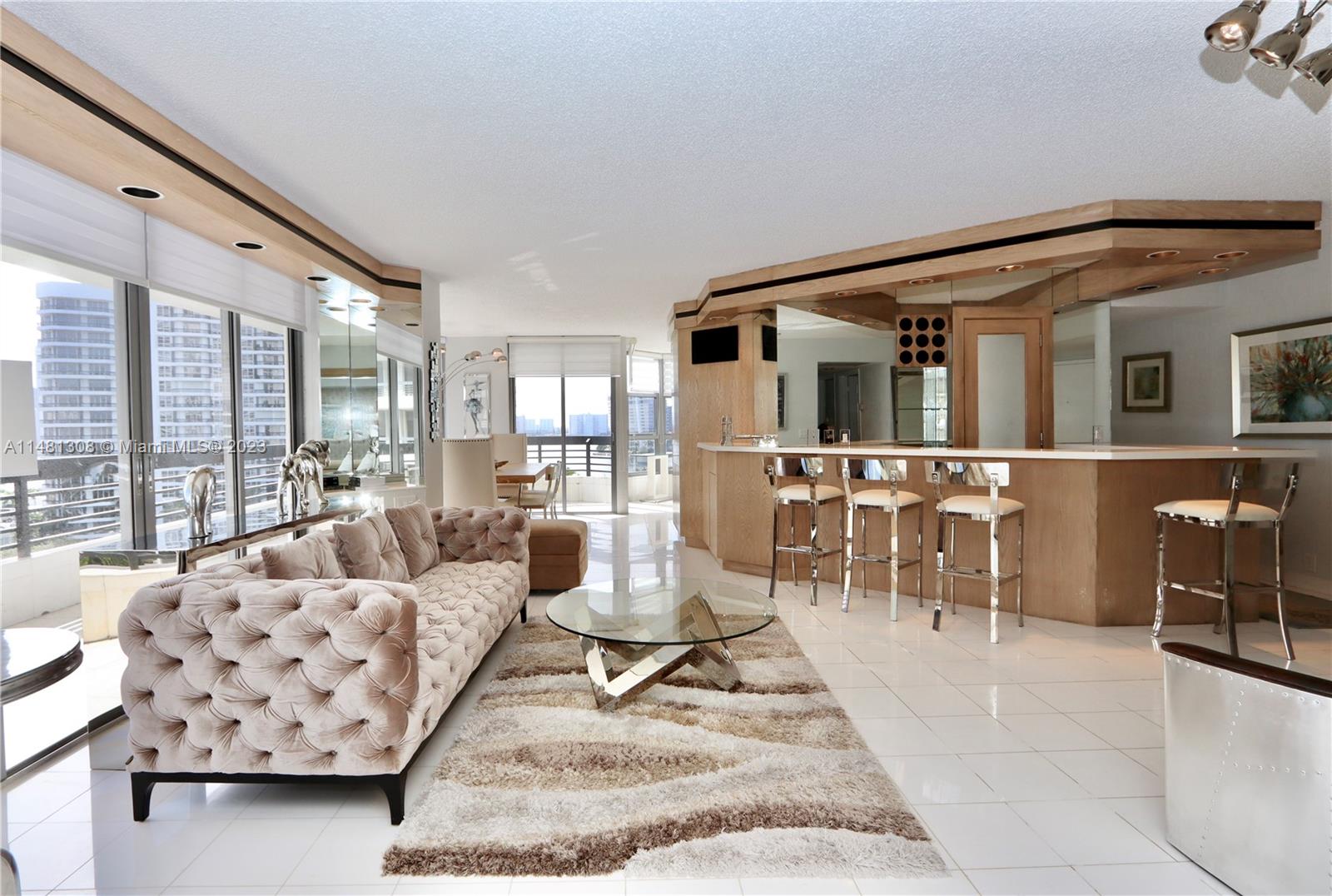 Exceptional 3/3 corner unit graces the 10th floor. It has tile in the living room and carpet in the bedrooms. 3rd bedroom has been thoughtfully converted into aTV room. Well-designed layout offers a split floor plan, providing both privacy and ample space. Step outside onto the wrap-around balcony to be enjoy panoramic vistas of the bay and marina. Washer and dryer inside the unit.The building offers an array of amenities, including a well-equipped fitness center, a heated pool, a library,seven clay tennis courts,4 pickleball courts,1 basketball court,a dog park,1mini market,a beauty salon,e-car charging stations,and an on-site restaurant.This is truly a place where luxury living harmonizes with convenience and comfort. FRPTA applies.
