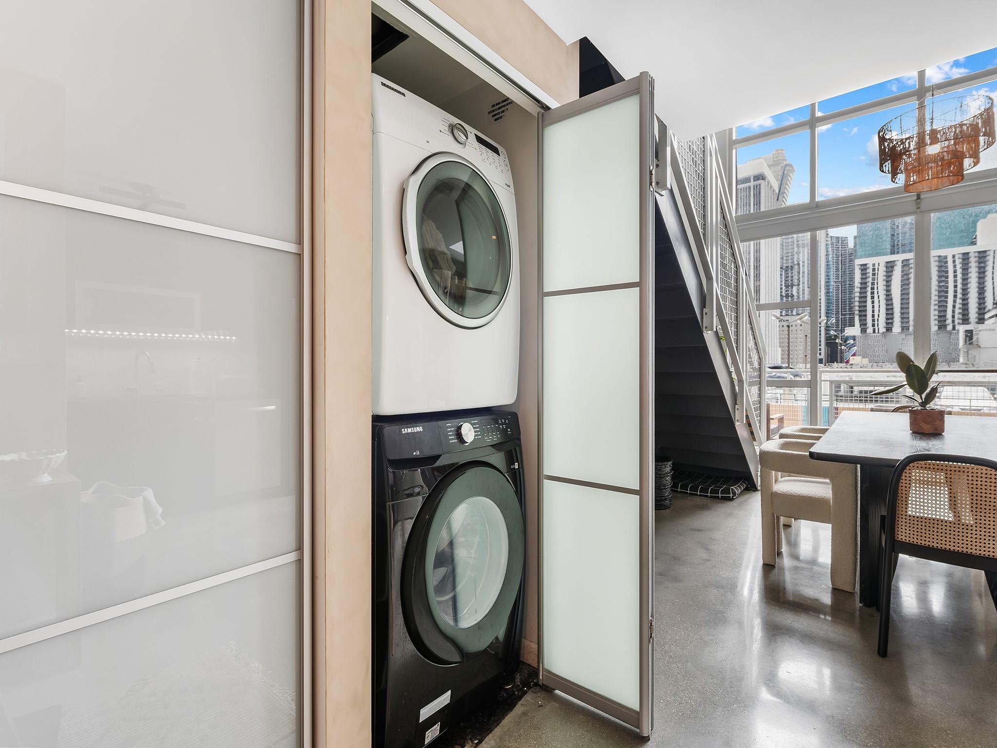 Step into 611, a truly unique unit within the stunning Vizcayne building. Immerse yourself in the radiance of natural light in every corner of this two-story loft, boasting two bedrooms, a den, and an expansive layout. Offering floor-to-ceiling impact windows and doors, complemented by polished concrete and bamboo flooring. This residence presents a private balcony with breathtaking views of Miami's skyline, along with the added convenience of a storage unit, security, resort style amenities, private parking space, and valet service. Ideally situated, you'll find yourself within easy reach of Bayside Park, Kaseya Center, Starbucks, Whole Foods, Museums, Metro-mover, major highways, and many more shops and restaurants.