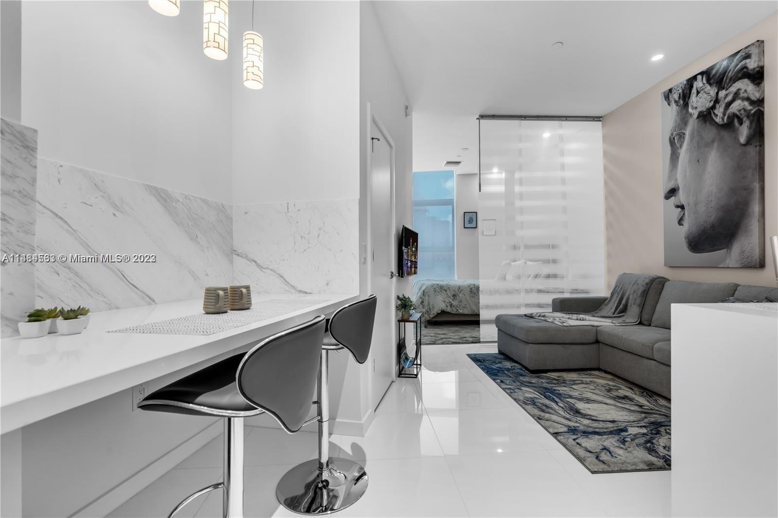 PARAMOUNT MIAMI WORLD CENTER.Spectacular Studio-4th floor. SHORT TERM RENTALS FROM 31 DAYS PERMITED!Great Opportunity. Fully Furnished (optional).Unit has white porcelain floors,BOSH appliances, quartz countertops,spacious bathroom.Plenty of room/private bedroom, Bar&Living Area.Walk-in closet.Highats/dimmable system. Beautiful Panoramic High Ceiling Window/urban view. 4th floor. 24 free valet parking!!!storage space included,Amazing Luxury lifestyle,45 amenities, Roof Top at 58th,5 pools.Asoc.fastApproval/Investment property - Rents from 3600- Water,Basic cable and WIFI included in HOA: 616 per month! amazing! Owner Motivated To rent or sell.