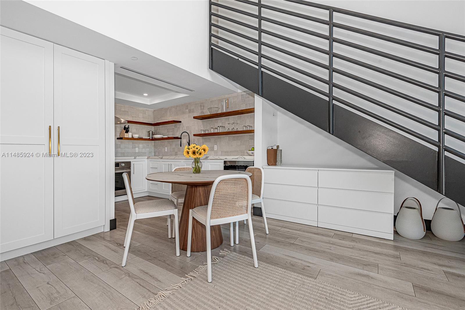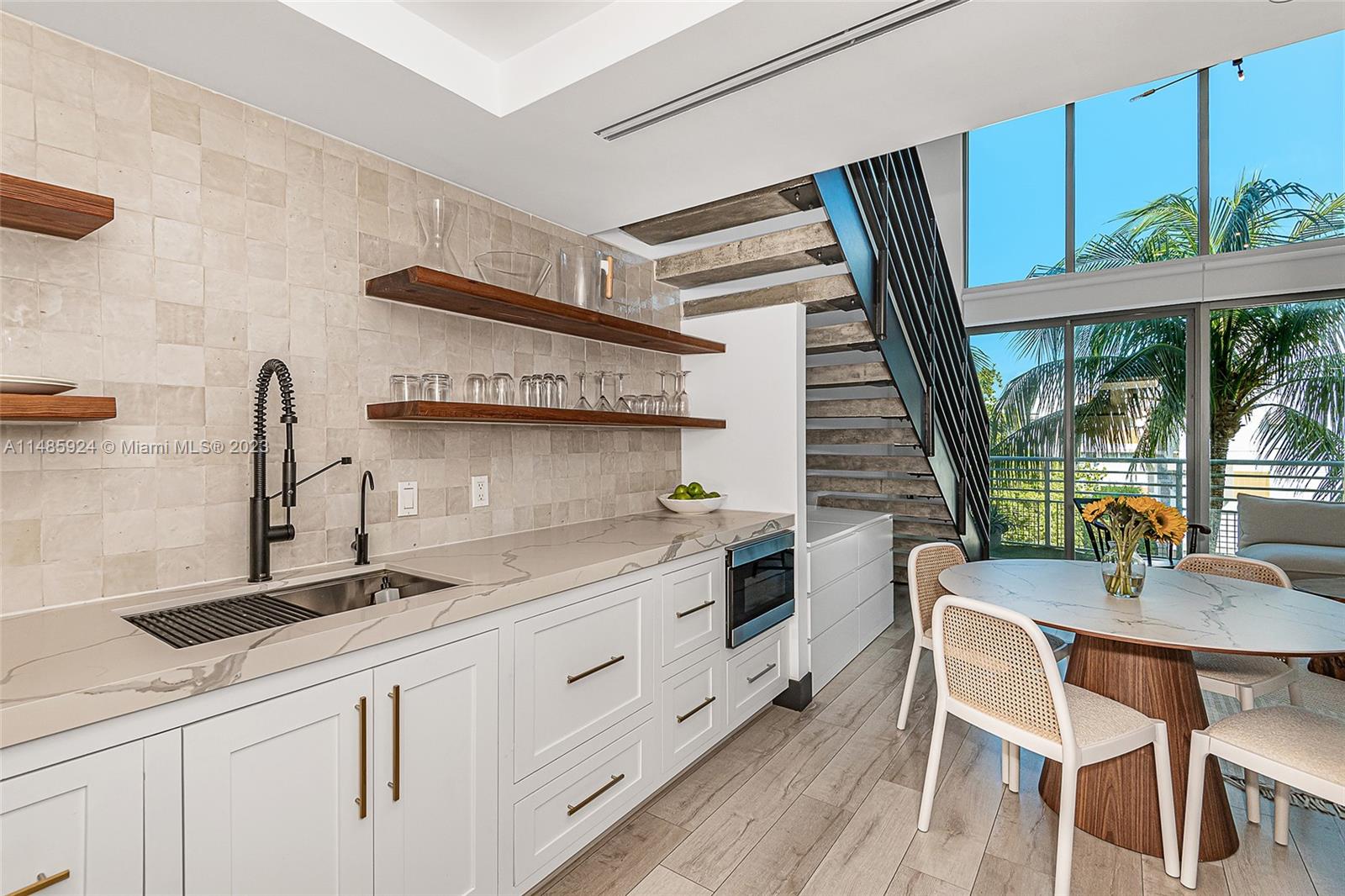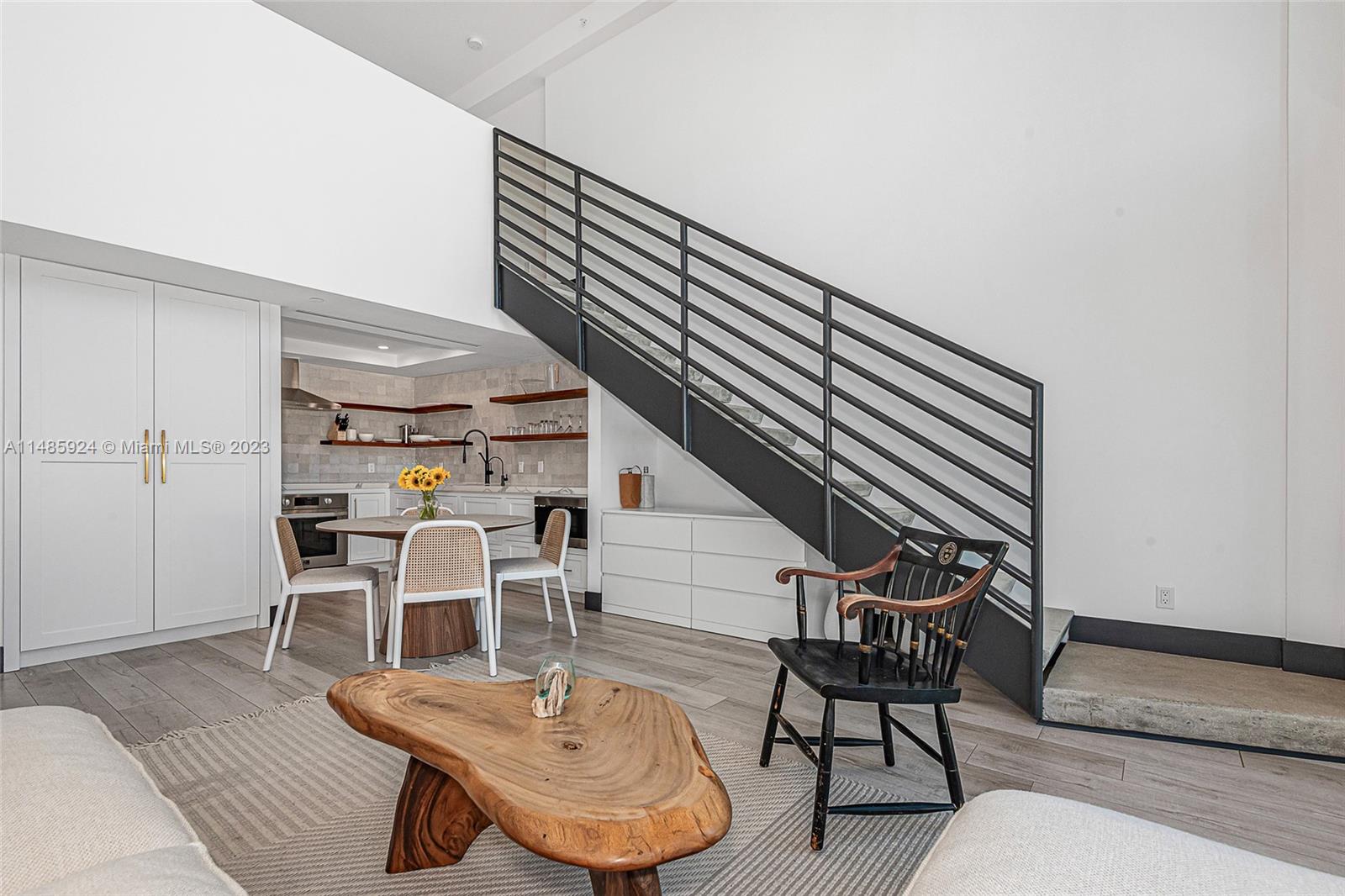 Stunning penthouse with a private rooftop deck at the Absolute Loft designed by Kobi Karp. The 18-foot ceilings make the space feel incredibly open and luxurious. The attention to details in the remodeling, from the custom kitchen to the handmade Moroccan tile backsplash to the smart oven, reverse osmosis water filter, custom reclaimed wood shelves over quartz counters, custom milled bathroom vanities and custom doors show a sophisticated touch. Both the newly added large pantry and storage closet downstairs allow for ample storage. Large master bedroom and bath now with two custom closets located on the second floor. The private rooftop with 360-degree views with water, electric, artificial turf is a major standout, perfect spot to enjoy the Miami Beach scenery.