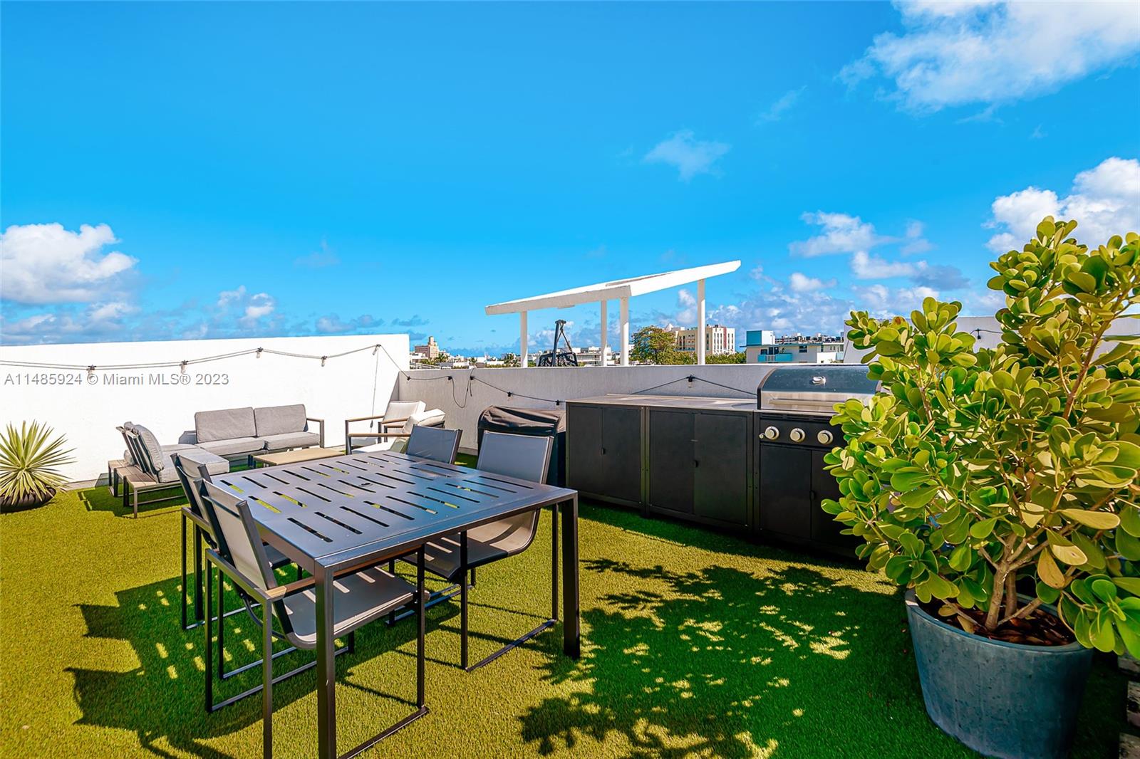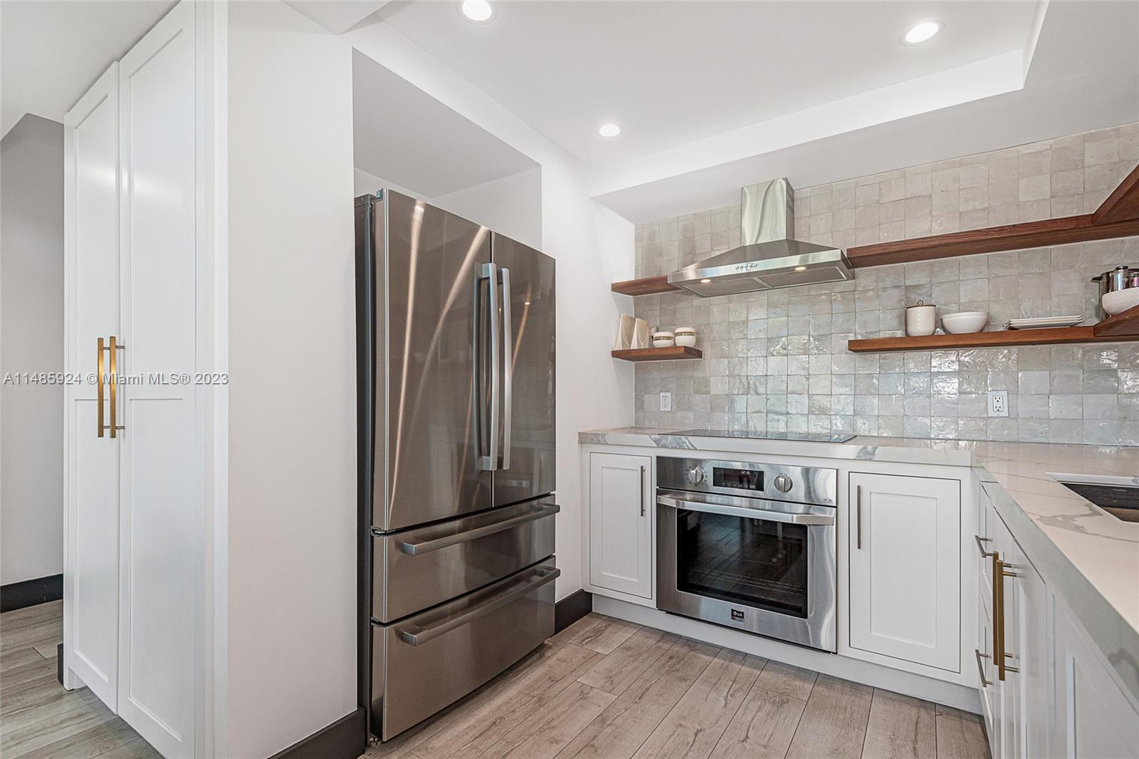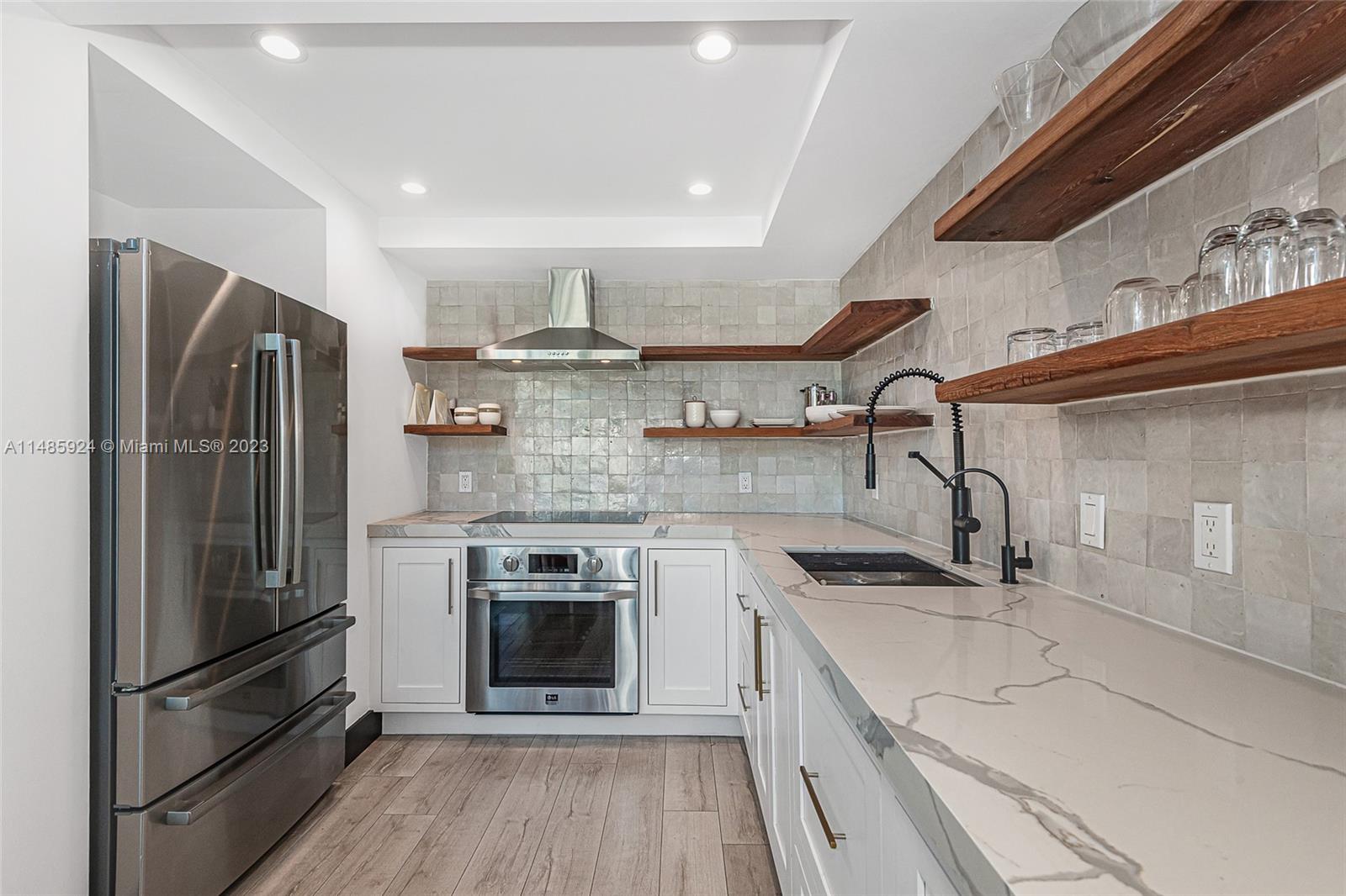 Stunning penthouse with a private rooftop deck at the Absolute Loft designed by Kobi Karp. The 18-foot ceilings make the space feel incredibly open and luxurious. The attention to details in the remodeling, from the custom kitchen to the handmade Moroccan tile backsplash to the smart oven, reverse osmosis water filter, custom reclaimed wood shelves over quartz counters, custom milled bathroom vanities and custom doors show a sophisticated touch. Both the newly added large pantry and storage closet downstairs allow for ample storage. Large master bedroom and bath now with two custom closets located on the second floor. The private rooftop with 360-degree views with water, electric, artificial turf is a major standout, perfect spot to enjoy the Miami Beach scenery.