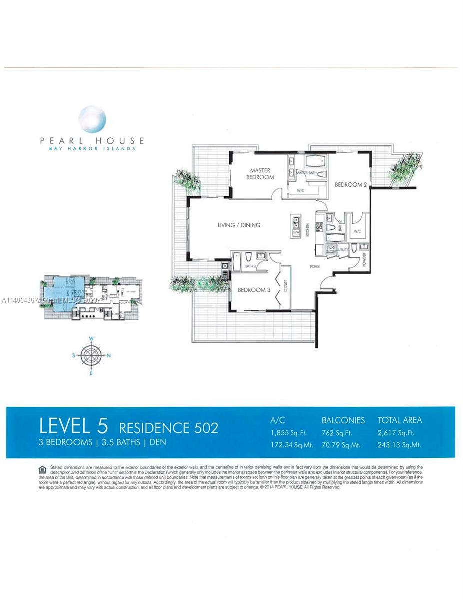 Unit 502 at Pearl House is a luxurious modern residence that boasts almost 2000 SF of living space, which includes 3 bedrooms, den, 3.5 bathrooms, and 4 private balconies that span over 750 SF. Sun-drenched with floor-to-ceiling windows, walk-in closets, Sub-Zero, Asko and Wolf appliances, and a smart home system. Building offers garage parking, gym, secure lobby, and rooftop pool. Walking distance to the beach, playgrounds, places of worship, restaurants, shopping, supermarkets and A+ Schools. 2 garage parking spaces included (one space with a lift system). Large storage included )located on 5th floor)