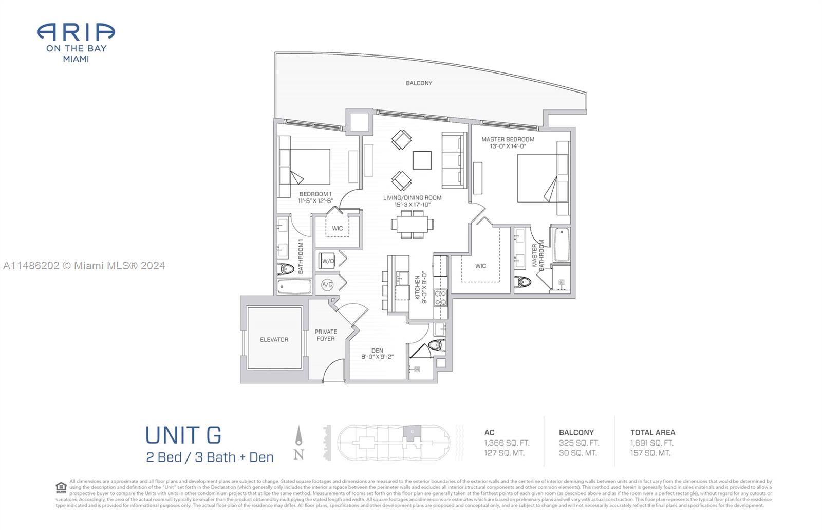 Stunning 2 Bedrooms + Den with 3 full bathrooms, private foyer, and a wraparound balcony offering breathtaking bay views from the 21st floor. This 1,366 sq ft (127 sqm) unit features a 325 sq ft (30 sqm) balcony, totaling 1,691 sq ft (157 sqm) of luxury living space. Enjoy spacious bedrooms with walk-in closets, an Italian kitchen with top-tier appliances, and a private elevator. The building offers 5-star amenities, including 2 pools, a spa, sauna, steam room, yoga studio, gym, kids' playroom, BBQ area, business center, and concierge. Prime location minutes from Arsht Center, South Beach, Wynwood, and MIA Airport.