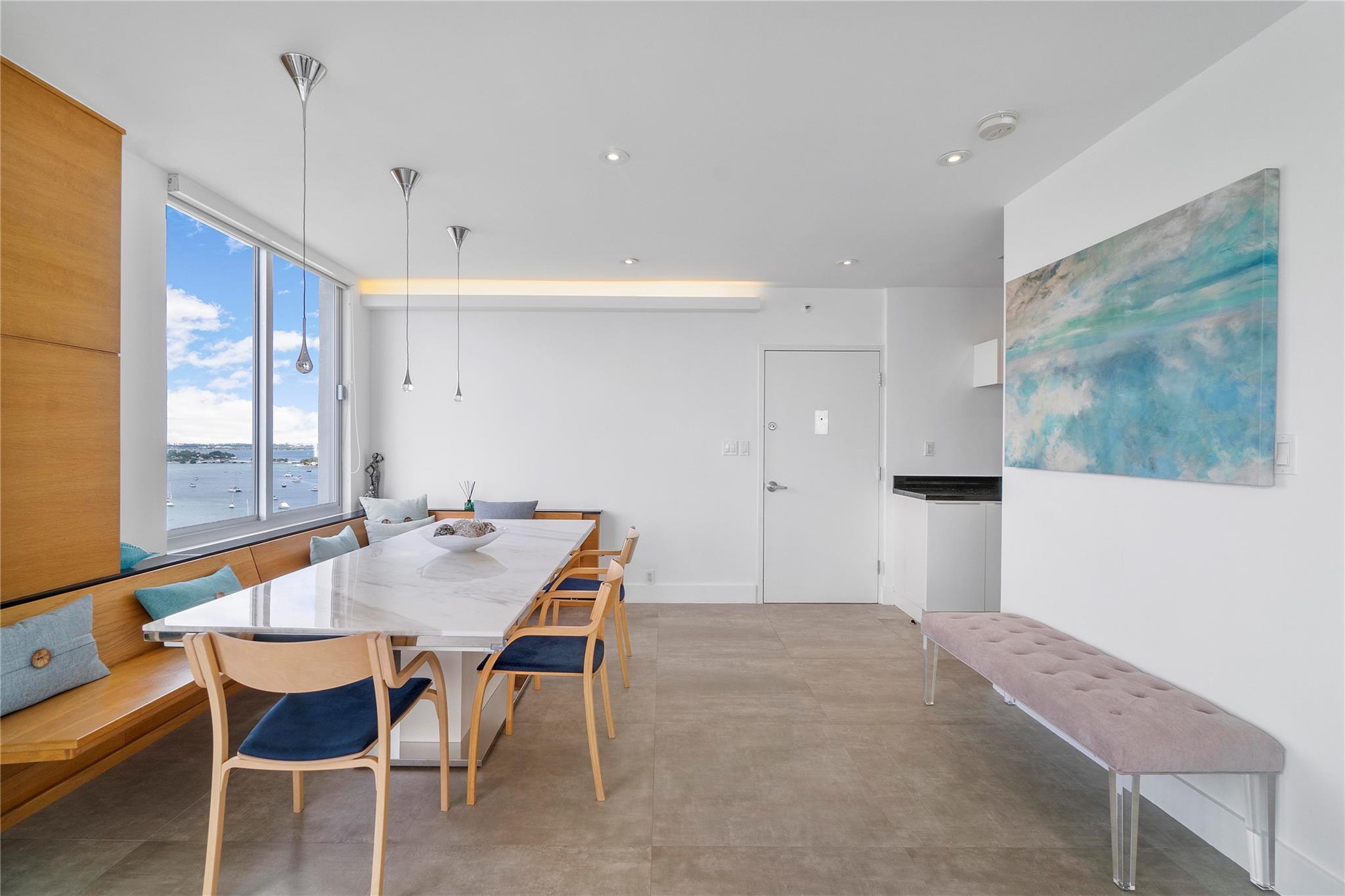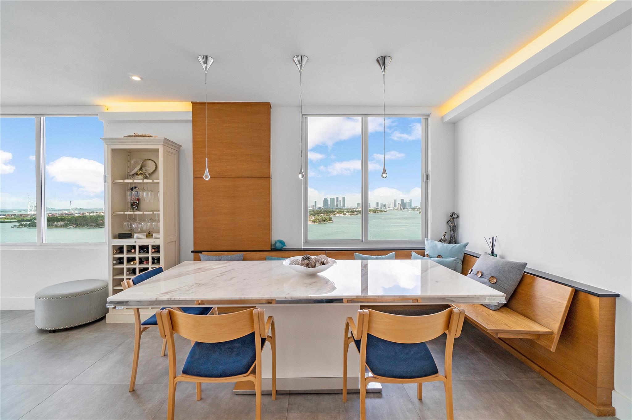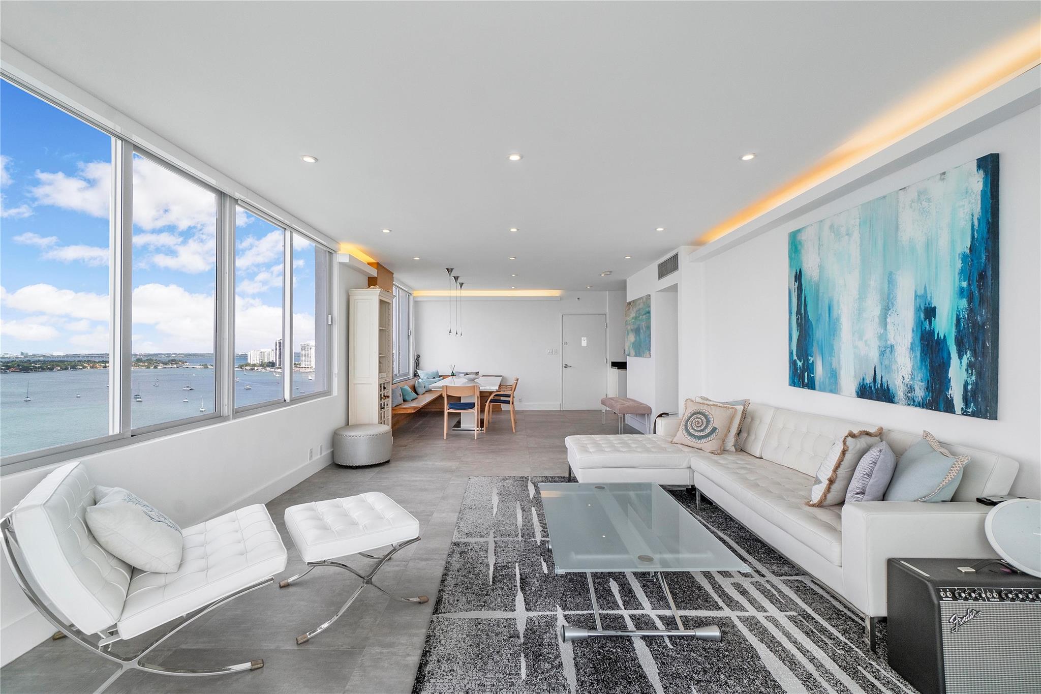 Exclusive Penthouse featuring location, style, and privacy in a unique updated 2 Bed/2 Bath dream Bayfront condo right on the water; feels like vacation each day with pristine ocean & intracoastal sunset views from all rooms in this corner unit. Gorgeous balcony w/ breathtaking panoramic water views of the Blue Atlantic Ocean & the night lights of the prominent Miami Beach skyline. Spacious remodeled kitchen, fully porcelain tile flooring throughout the entire living area, impact windows, designer bathrooms, & laundry room. Enjoy the sound experience in the Mirador building nestled in the heart of Miami Beach w/ resort style amenities such as heated pool, 5000 sf fitness center, sauna, convenience store, on site manager, & valet. Wonderful for entertaining or just relaxing outdoors.