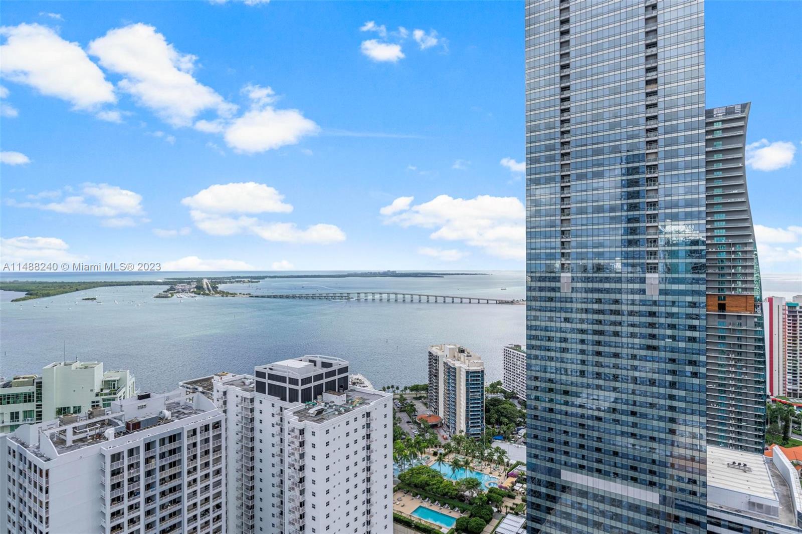 The gem of the Financial District holds this large 1 bedroom with unrivaled views of Key Biscayne and Coconut Grove at almost 1000 sq ft. Rare large balcony wont last. The Brickell Arch Building it is a unique fusion of a professional building, hotel, and offices. Recently renovated common areas by AKA Hotel ($16M investment). Enjoy a Michelin chef restaurant indoors, outdoor seating or to your unit, complimentary valet, 1 parking space, and hotel amenities. This building is it! All guests likely to appreciate the elevated experience in this dynamic and professionally infused environment. No Rental Restrictions for those with a flexible lifestyle, or for those interested in an upscale, and tranquil short term - long term investment.