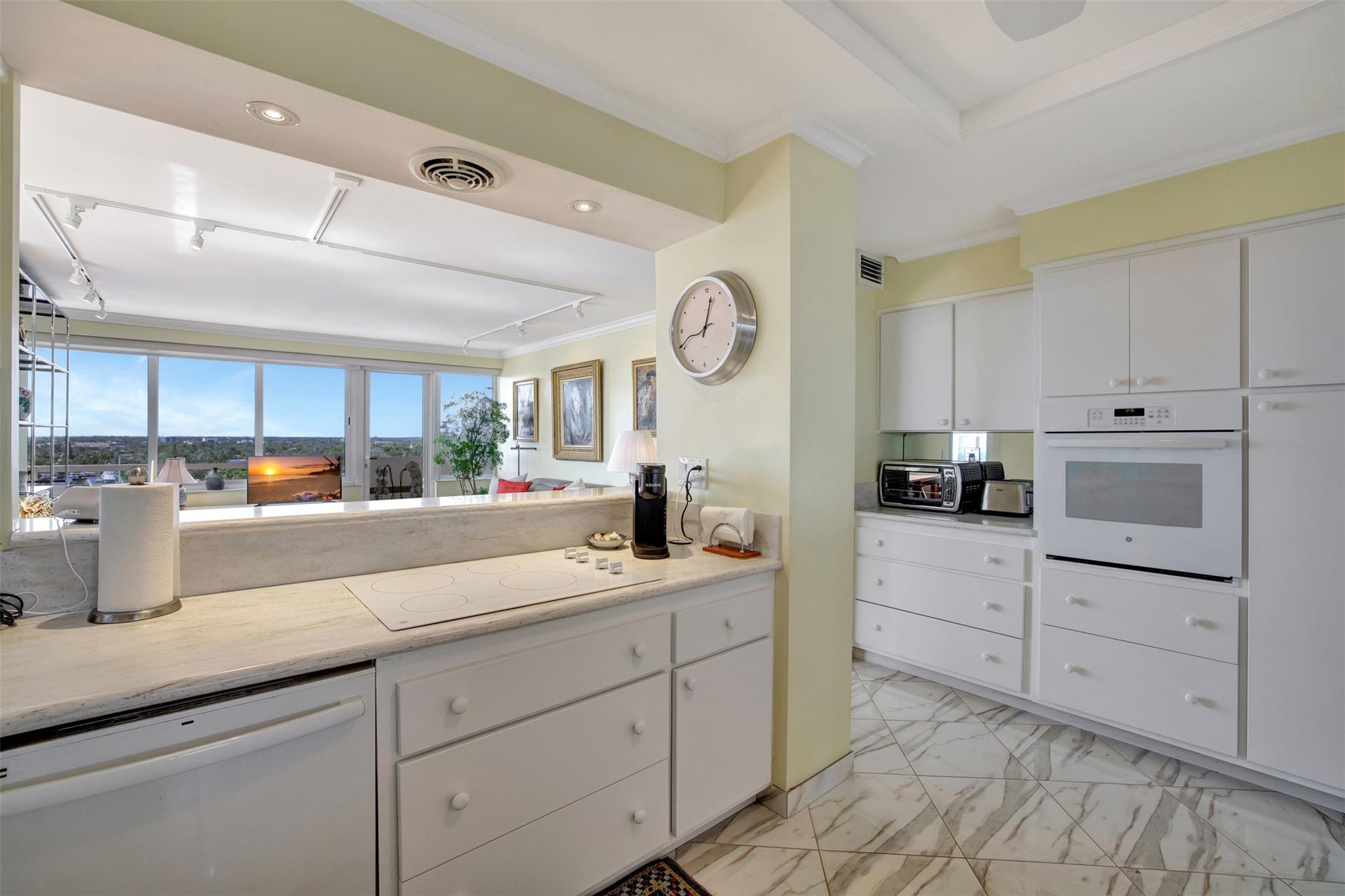 Step into this beautifully decorated FURNISHED corner unit with the most spectacular views of direct Intracoastal and downtown waterways/skyline and you will see why this is a very unique and desireable unit. This upgraded unit features a stackable washer/dryer, corian countertops with a brand new stove top,a built in murphy bed, hurricane impact windows, new a/c unit June 2023, just to name a few. The building is under restoration, will be completely re-painted with new glass balconies. The building offers a large heated pool, a newly renovated gym, a community room, and additional storage. With 24 hour security, on site management. This 55+ community is a short walk to our beautiful beach, great restaurants and an abundance of wonderful entertainment and nightlife.