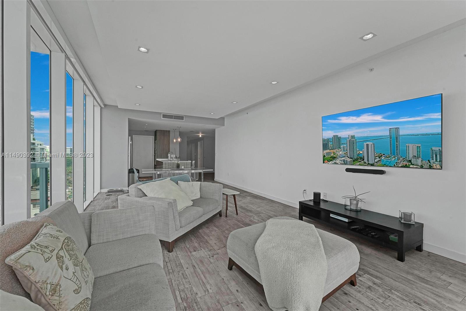 Beautiful corner unit in Edgewater with water views! Located in full-service boutique building Bayhouse, offering direct views of the bay and city with an immense wrap around balcony, capturing sunsets and sunrises. 3 bedrooms, 2 full bathrooms, a half bath, and over 1,500 square feet, floor to ceiling impact windows throughout, semi-Private elevator opens to a private foyer. Amenities include infinity pool, expansive outdoor terrace with day beds, yoga room, gym, and kids play area. Unit can be sold furnished and is easy to show!