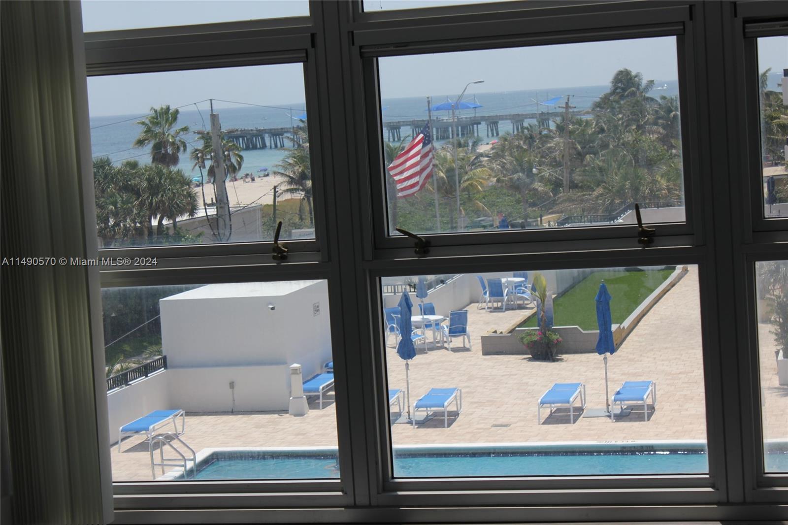 Amazing panoramic views of the ocean and pier with breathtaking sunrises and sunsets from this 6th floor unit. Enjoy a morning coffee at sunrise or a sunset unwinding from its balcony. Stunning views from all the rooms! It includes two assigned garage parking spaces. Direct access to the beach. Dues include water, sewer, trash, roof, exterior, building insurance, cable/wifi. Completely Renovated in 2020, new water heater, impact windows. It features kitchen with quartz countertops and stainless-steel appliances, 2 primary bedrooms, walk-in closets, vinyl floors throughout. Resort style amenities including: 2 Olympic size heated pools, Tennis, Pickle ball and Bocce courts, grills, gyms, sauna, bike and storage rooms, party room, library, car wash area and more.