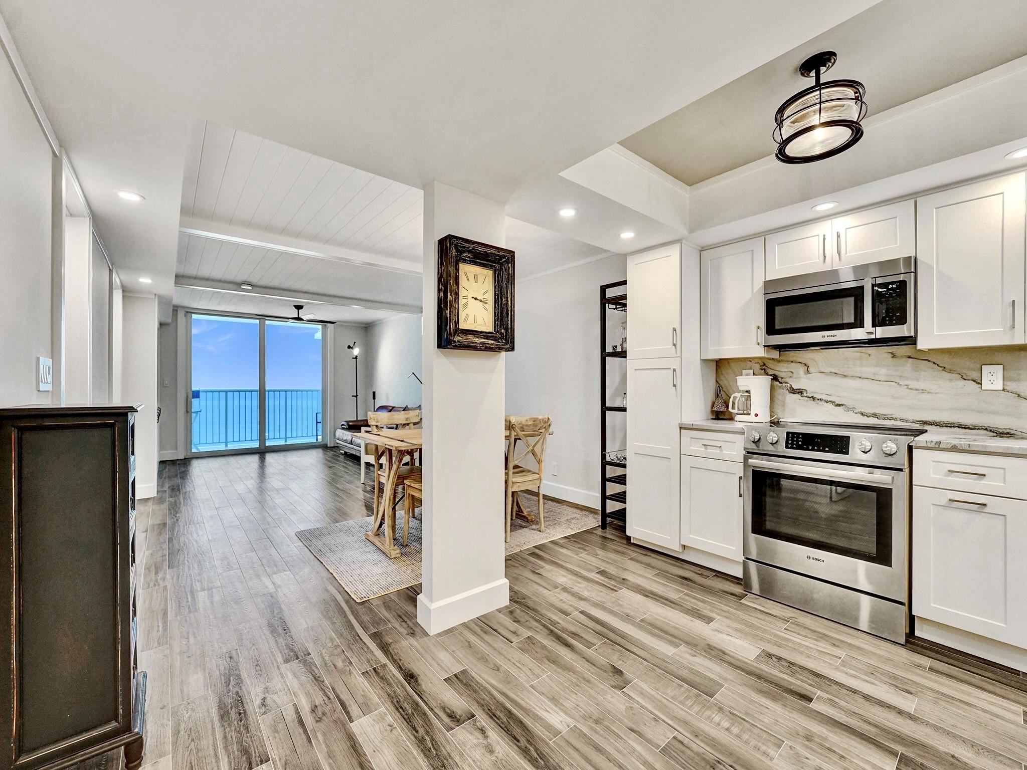 Wake up every day to gorgeous beach views! This completely renovated 1 bedroom (+ bonus room/den), 1.5 bathroom condo is DIRECT oceanfront. Sit on your balcony and enjoy amazing views of the ocean and the Hollywood Broadwalk. This turnkey, fully furnished, unit has updated kitchen (cabinets, stainless steel appliances, quartz countertops), baths, tile flooring, lighting, and impact glass sliding doors. The Edgewater Beach building has a rooftop pool and garage parking (705’s space is on the second floor). You’ve always wanted to live on the beach, and now you can. Come see this stunning beachfront condo, and make your dream a reality!!!