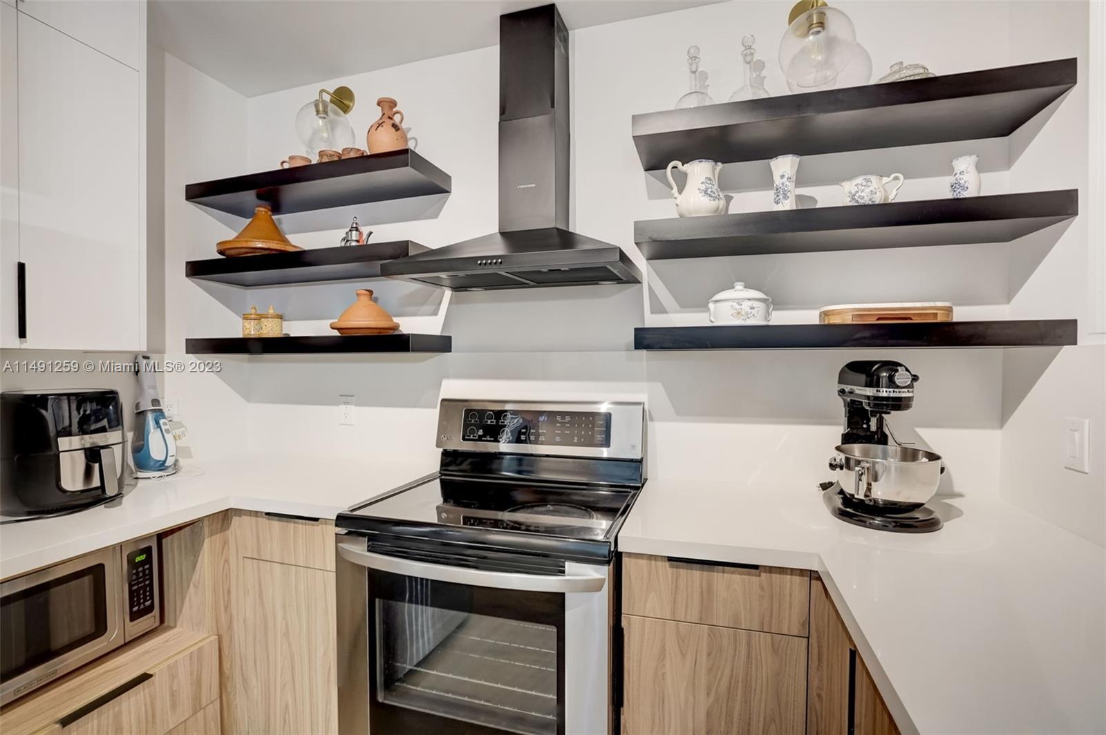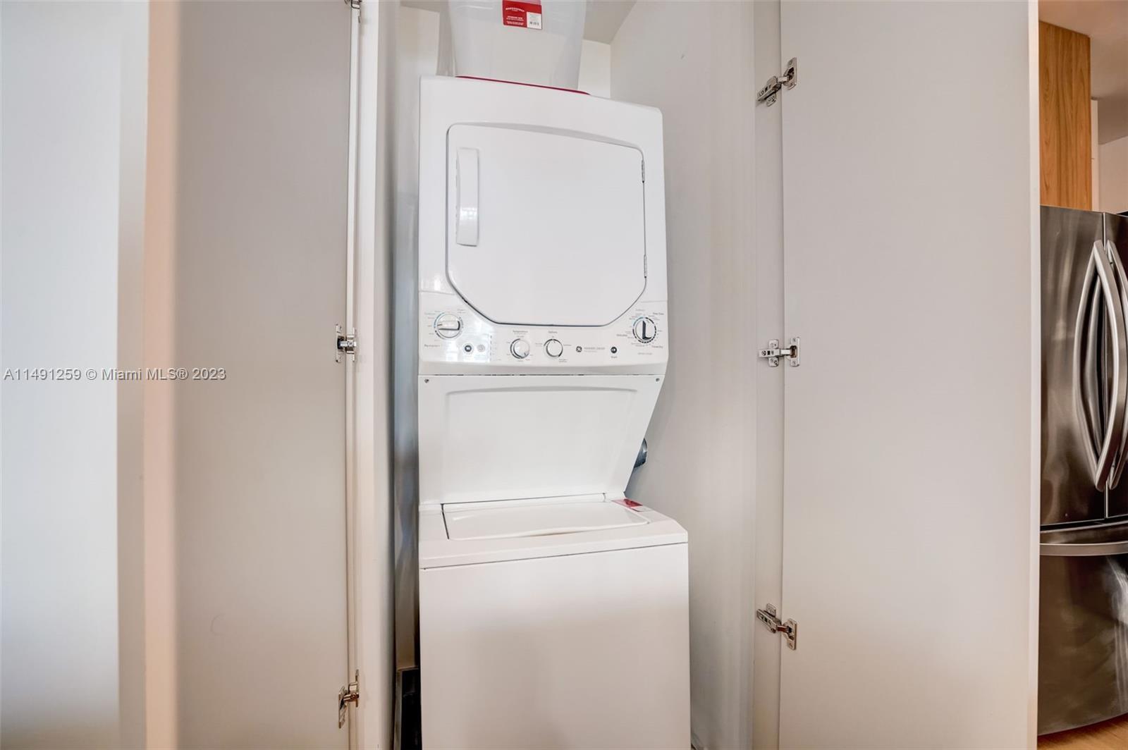 Edgewater Lofts is a boutique building situated in the heart of Edgewater. Its prime location offers convenience due to its proximity to Margaret Park, shops, restaurants, Downtown, Brickell, Midtown, Design District, and Wynwood. Residence 609 is a large corner unit facing East, featuring 1,123 SF, 2 bedrooms, 2 bathrooms, a den, two spacious balconies, and high ceilings. The original floor plan featured a 1 bed/2 bath loft style, which has been converted into a 2 beds/2 baths +den configuration. Recently renovated, the residence features modern kitchen cabinetry, stainless steel appliances, luxury vinyl plank flooring throughout, and a washer & dryer in the unit. It also includes one parking space. Building amenities include a pool, jacuzzi, gym, and sauna. 3D virtual tour available.