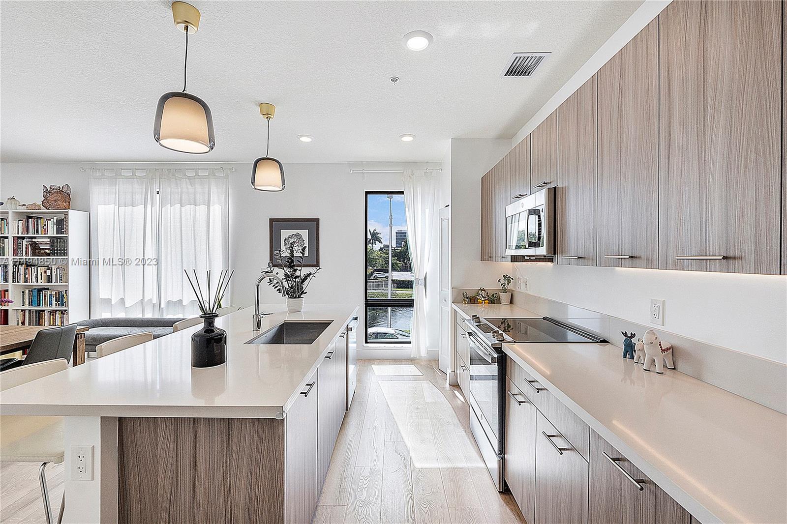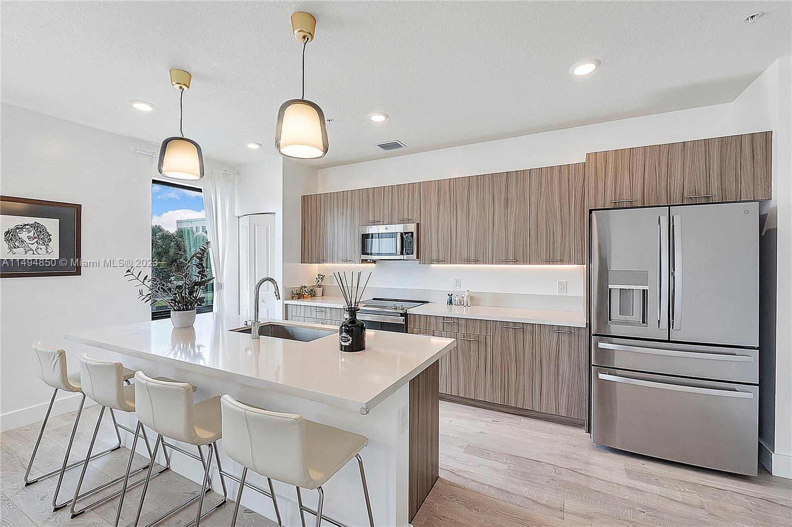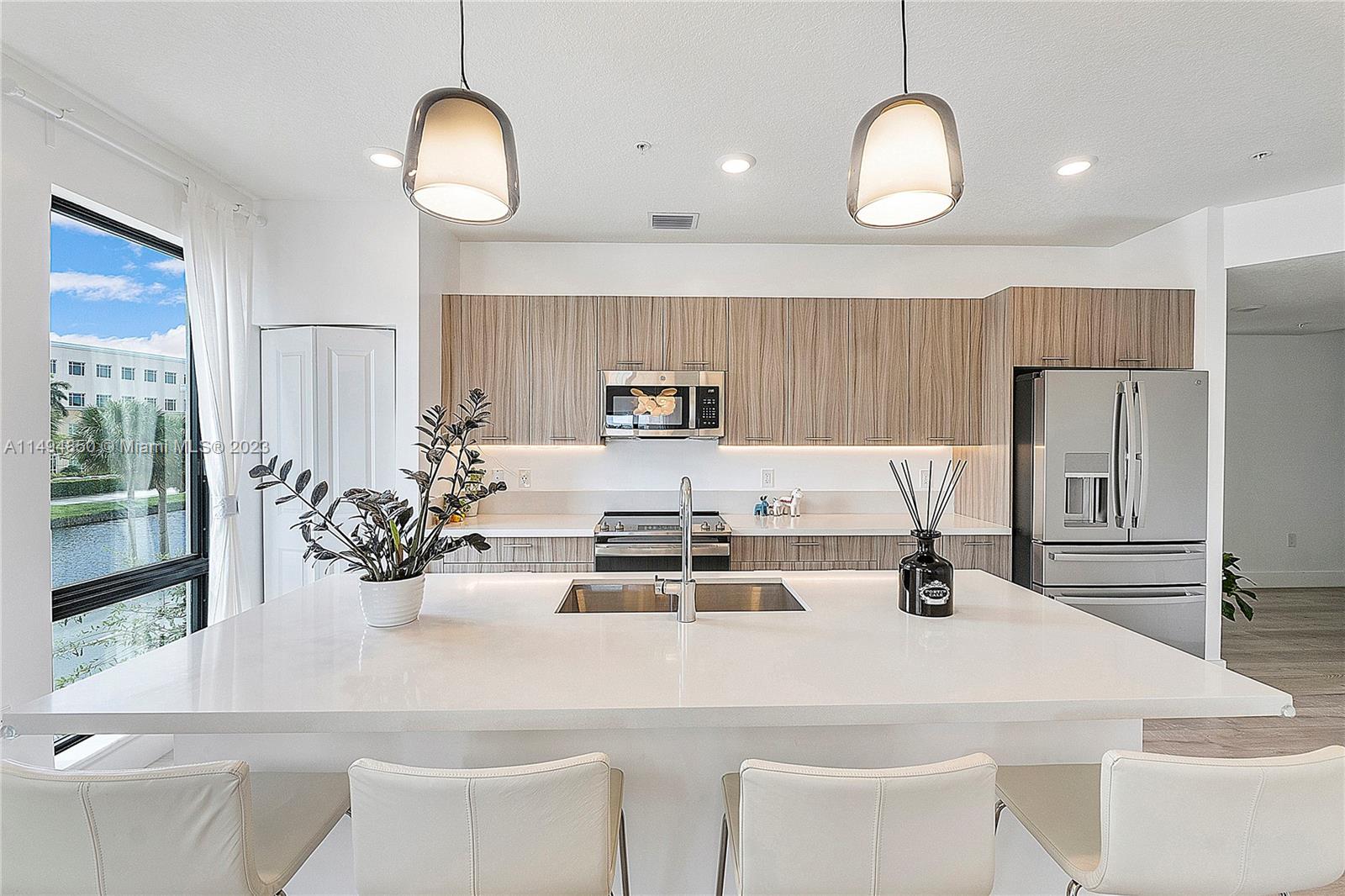 Modern contemporary luxury condo with natural light awaits you in this 3 bedrooms, 2 bath corner unit. This popular ME floor plan is rarely available. Private entry, grand foyer, double balcony with water views. Gourmet Kitchen with modern cabinets, quartz countertops, island, S/S appliances upgraded with GE Profile 4 door French refrigerator and GE Power Steam Washer & Dryer. New Pergo “Extreme Wood” throughout. Spacious bathrooms modern floating vanities. Large impact windows and doors. Grand Clubhouse with Resort Style Pool, Fitness Center, Splash Park, Indoor Running Track, Basketball Courts, Ballroom and more! Located in the exclusive master-planned community of Urbana by Lennar, walking distance to Downtown Doral where you will find fine dining, shopping and recreational activities.