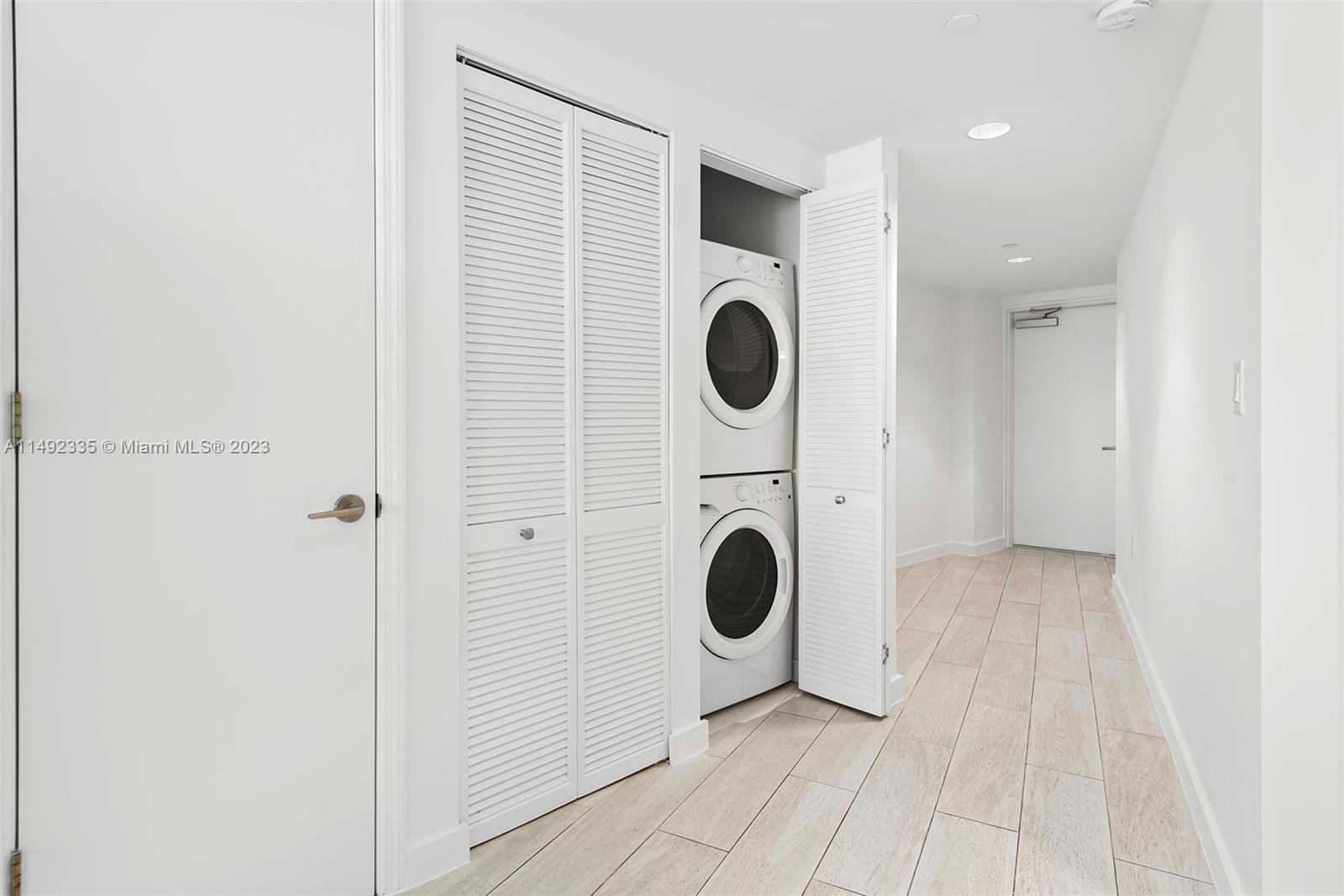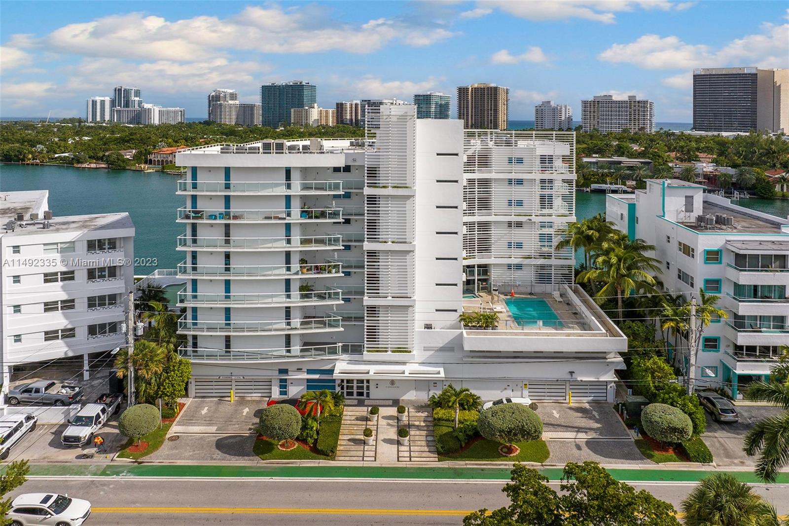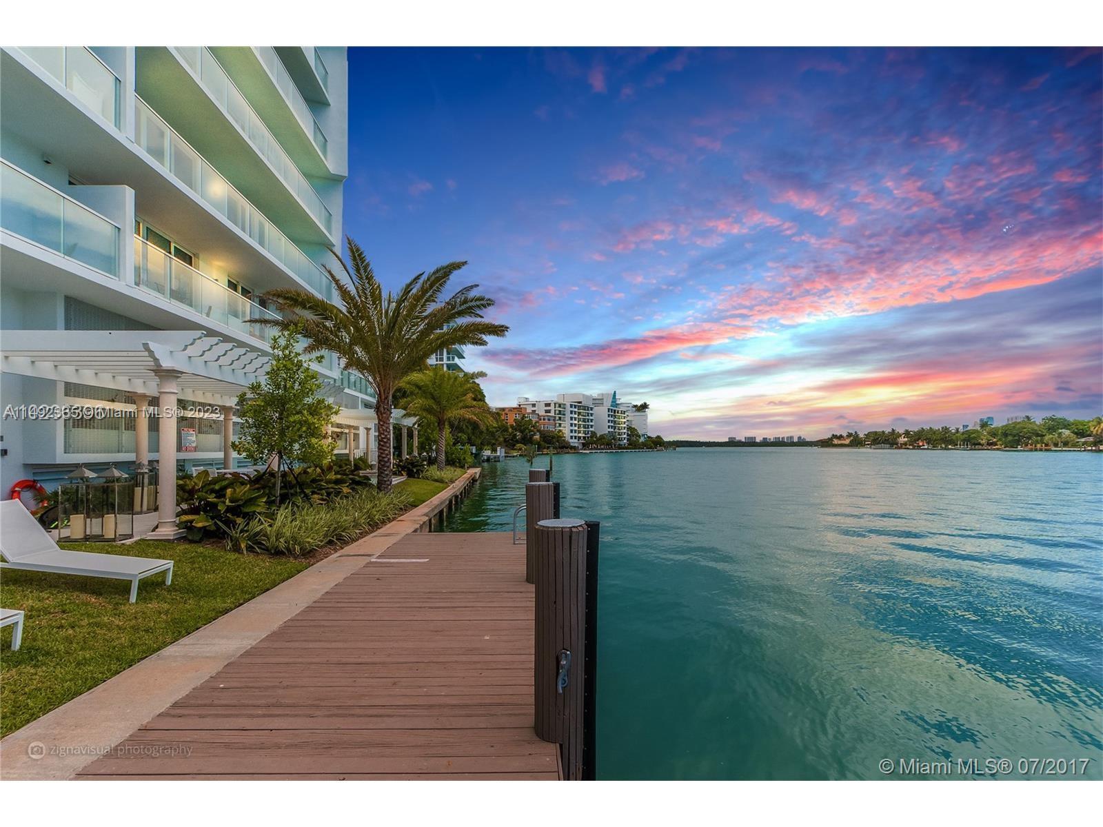 "Experience waterfront living at its best, located in Bay Harbor Islands. This condo, situated directly on the bay, offers mesmerizing views from the master bedroom, living room, and a sleek open kitchen. The unit features two spacious bedrooms and two bathrooms, Viking appliances, elegant quartz countertops, and full size washer and dryer. The exquisite beach wood porcelain floors extend out to a generous balcony, offering a panoramic bay vista. Residents enjoy amenities such as a gym, a relaxing sauna, dual pools facing east (smaller) and west, two dedicated parking spots and owner storage. Additionally, each bedroom is equipped with blackout shades. Located only a short distance to pristine beaches, the renowned Bal Harbour Shops, and the vibrant dining scene of Surfside."