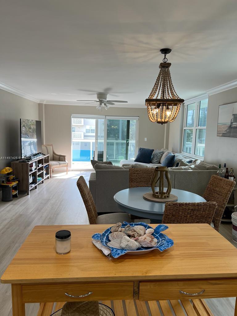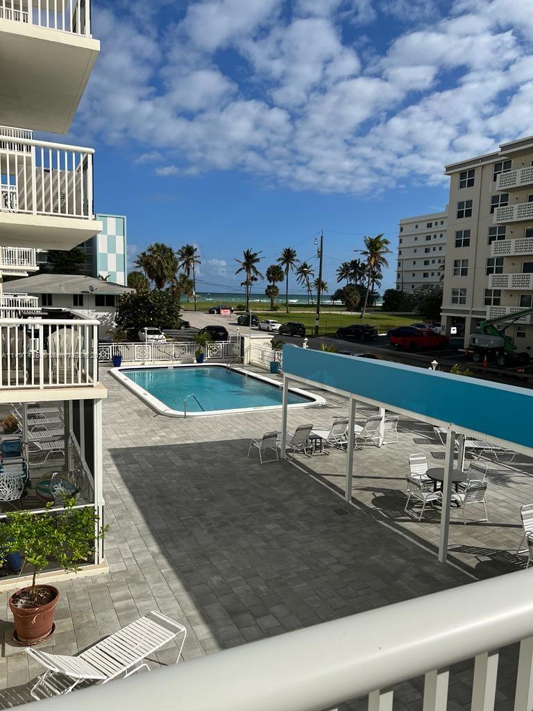 Enjoy this beautiful apartment with ocean and pool views from the corner wraparound balcony. Updated kitchen, with all new SAMSUNG stainless steel appliances (2022). New A/C unit installed in August 2023. Newly installed hurricane impact windows and sliding door. Recently passed the 40 Yrs. Certification. Included new roof, balcony, railings, pool, patio and barbecue area. Unit has individual storage unit and community bike storage and laundry area. Amazing location near the boardwalk, shopping, restaurants, Aventura Mall, Gulfstream Park and Racing, Ft. Lauderdale Airport and I-95.