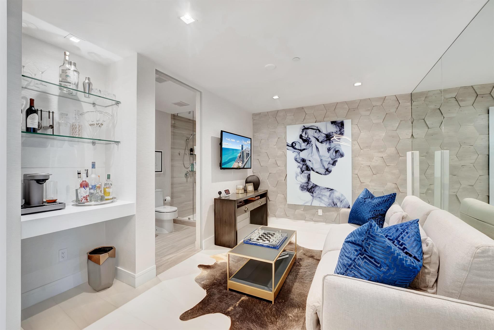 Armani/Casa is an unparalleled experience cultivated by renowned designer Giorgio Armani and famous architect, Cesar Pelli, situated in the heart of Sunny Isles. Within this stunning building is unit 3201, a fully furnished 4,019 sq ft ocean and intracoastal facing unit entirely designed and detailed by the reputable Steven G Interiors. Cesar Pelli's iconic 'glass skins' design is exemplified in the Armani tower with 56 floors of reflective glass accentuating the blue tones of the Atlantic Ocean. Comprised of 308 units, there is no other property like 3201. With 3 bedrooms, a den and 5 and a half bathrooms, this property is part of the exclusive '01 line within the Armani building granting some of the best direct ocean and intracoastal views in all of Sunny Isles.