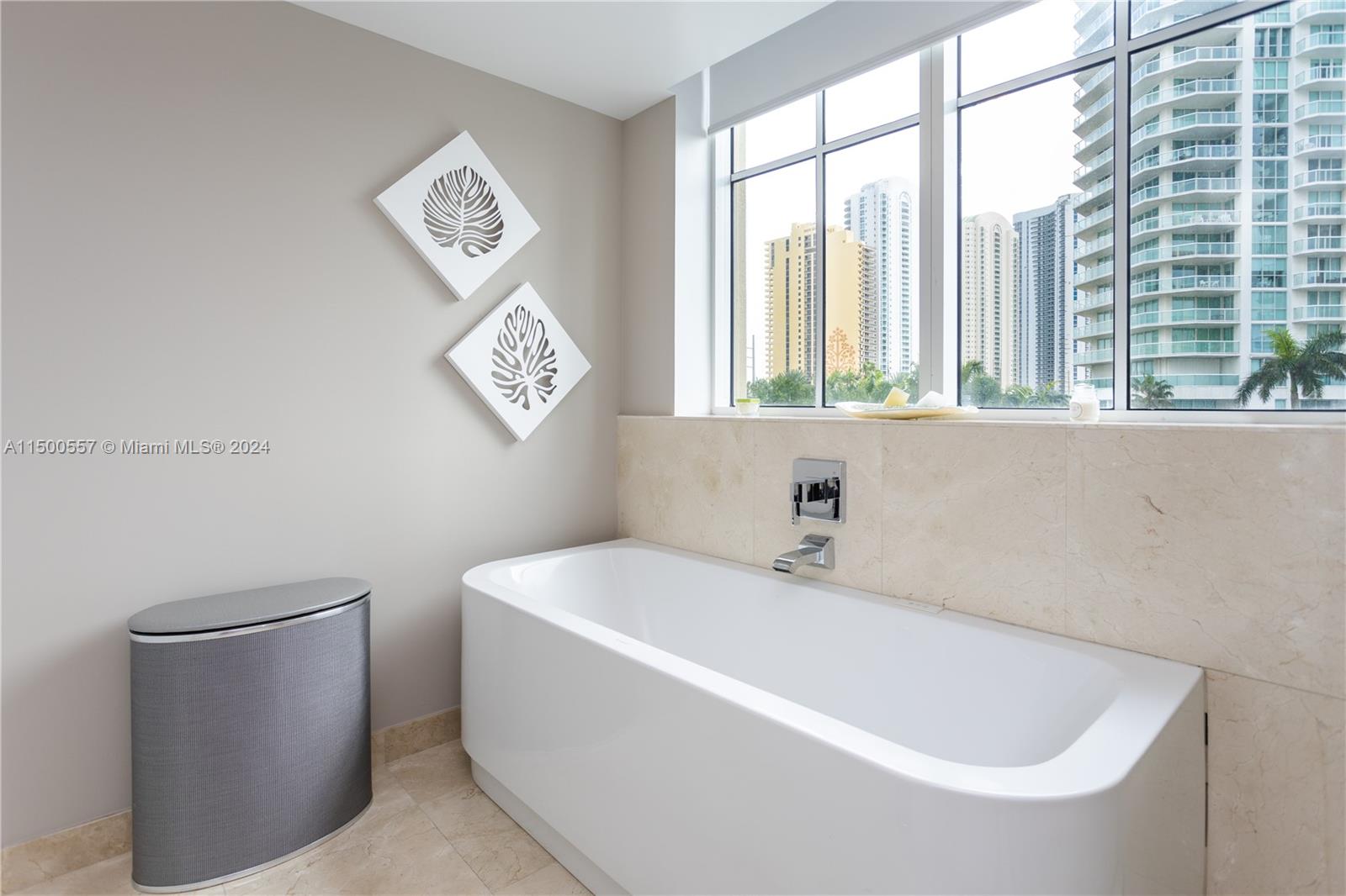 WATERVIEW 3BD/3.5BA CONDO. UNIQUE LAYOUT and SPACIOUS CONDO! One of the largest units in the Building (1785 sq ft). Elegantly furnished, white tile flooring and white kitchen. 2 MASTER BEDROOMS! Parking: Assigned spot on the same floor (don't need to use elevator), +1 free valet. Quiet Ambiance: Sole unit in wing, no street noise. Balcony: Exceptionally private balcony with a stunning bay view. Rain-friendly ceiling ledge. Amenities: Heated pool, gym, sauna, jacuzzi, conference room. Location: 3-min walk to the beach, Beach Club service available. Special Advantages: - Spacious main master bedroom. - Hurricane-proof windows. - Spacious closets in every room. - Large, modern white kitchen. - Freshly painted interior. - Brand new washer and dryer.