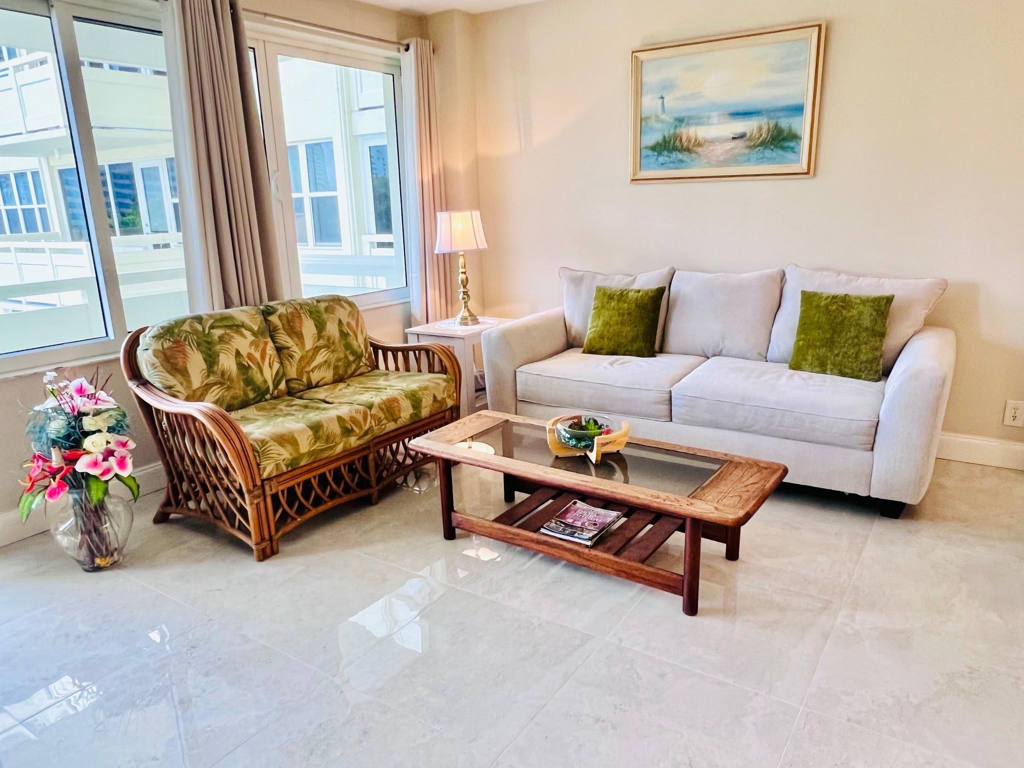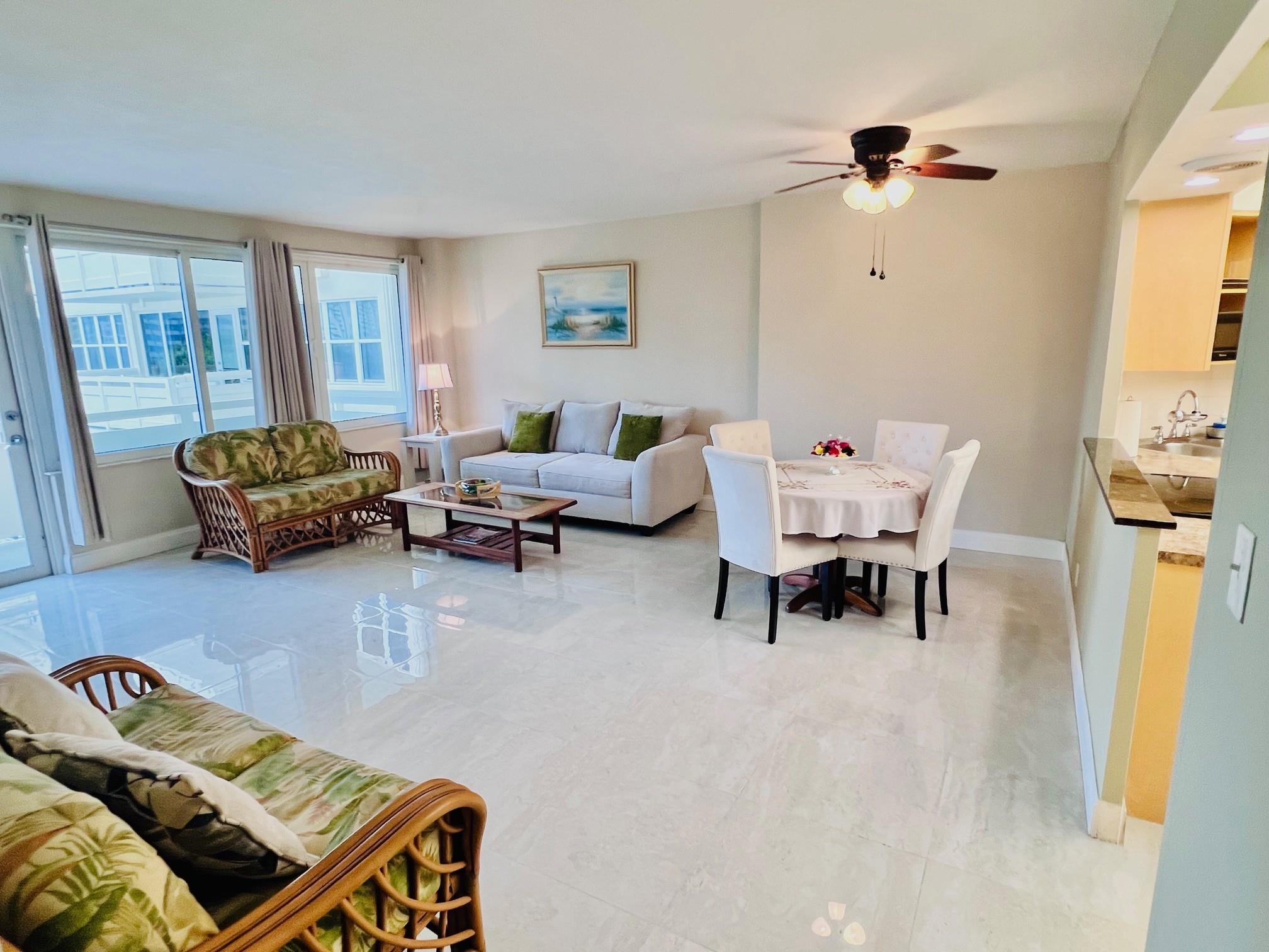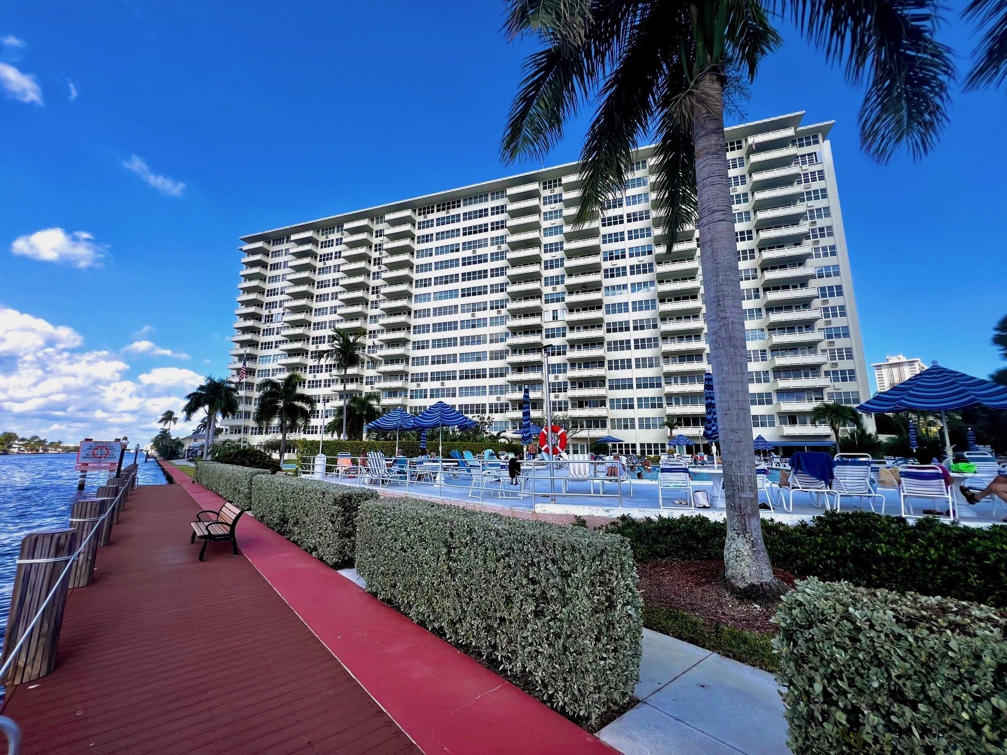 Spacious 1-Bed/1-Bath Furnished Turn-Key Condo. Fantastic Location on Galt Ocean Mile. Features include OPEN KITCHEN with Built-in Pantry, Stainless Steel Appliances, New Range & Dishwasher, plenty of Storage. Updated Bathroom and Beautiful NEW Large PORCELAIN TILE Floors throughout. Hurricane Impact Windows & Door for Complete Protection. Resort Style temperature-controlled Pool w/Beautiful Grounds directly on Intracoastal Waterway. Amenities include Secured 24 hr Lobby, Fitness Room, Library, Community Room, Bocce Ball and Shuffleboard. Walking distance, just steps to the Beach, Restaurants, Grocery Store, & Water Taxi. Enjoy the amazing City Views & Ocean Breeze! Association Includes Cable/Internet. No Leasing/Pets, Service/Support Animals permitted. One Owner must be 55+. LOW HOA Fees!