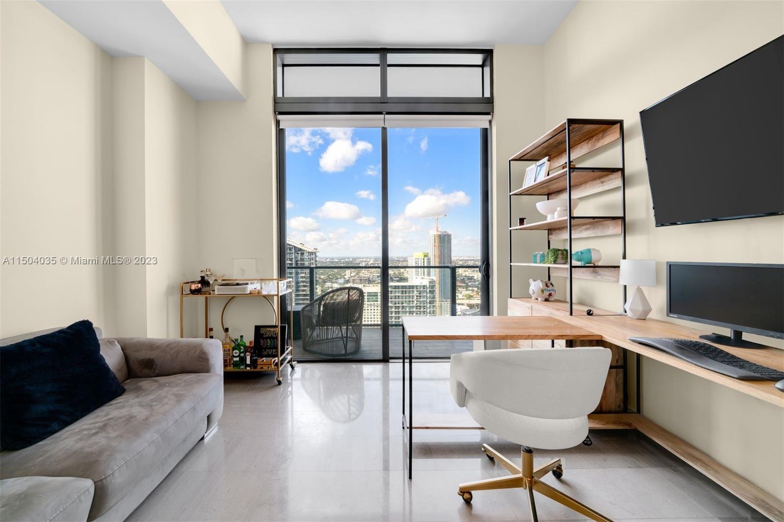 Discover the allure of unit 4104, a unique lower penthouse in Reach at Brickell City Center. This 3-bedroom plus den residence boasts exceptional high ceilings exclusive to this unit, creating a spacious and open atmosphere. The master bedroom offers privacy, set apart from the other two bedrooms. Relish breathtaking sunsets from the expansive balcony, ideal for outdoor dining and entertainment. The residence features luxurious Italkraft cabinetry and elegant stone countertops in both the kitchen and bathrooms, along with high-end Bosch appliances. Reach at Brickell City Centre is synonymous with luxury living, offering extensive amenities including a cutting-edge fitness center, heated lap and social pools, a full service spa, and more, ensuring an unmatched living experience.