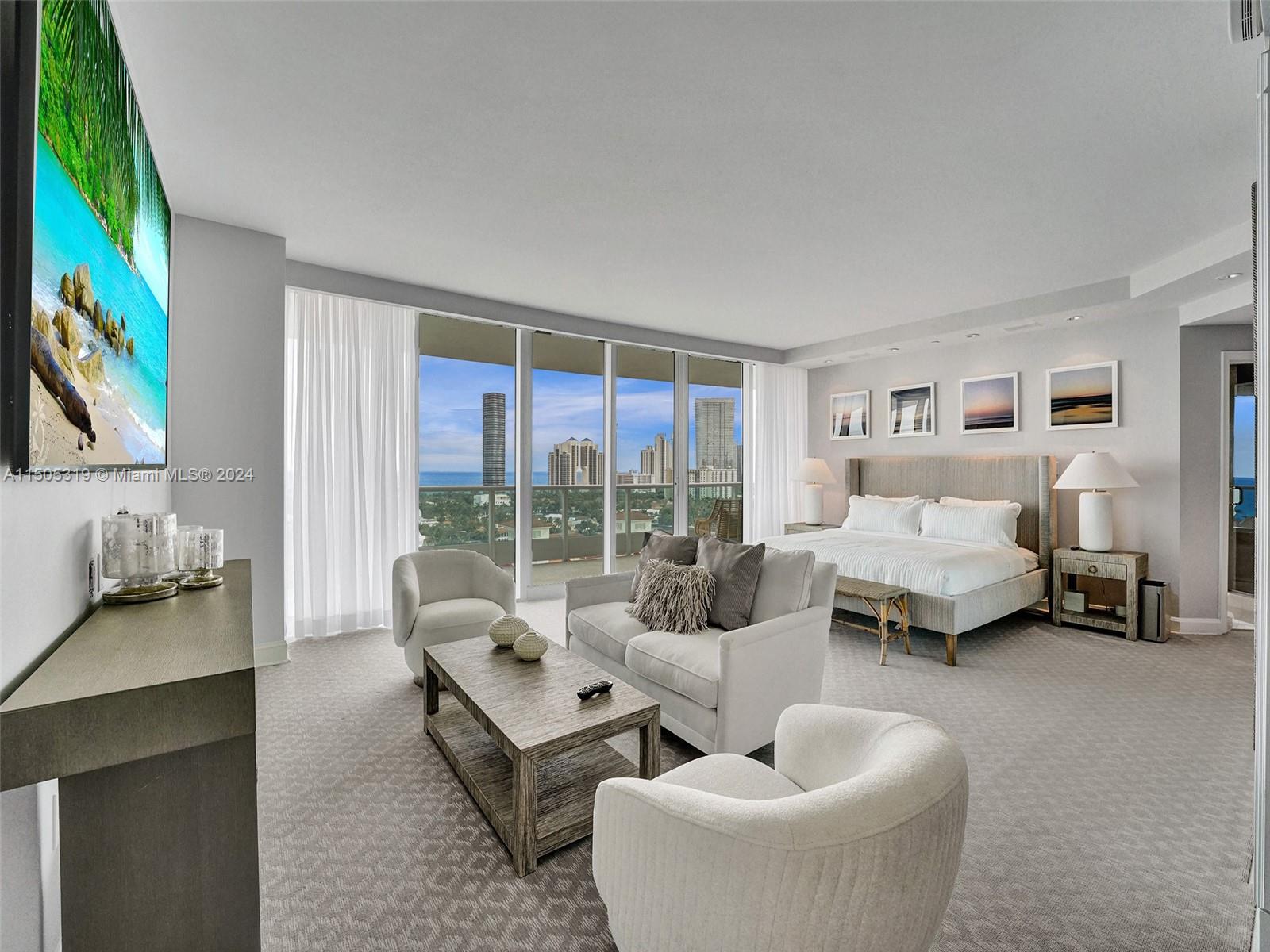 Welcome to this casually elegant 3-bedroom, 5-bathroom home In Porto Vita. This spacious 3300-square-foot residence has been refreshed, buffed, painted, and lightened up, offering a truly luxurious living experience. Floor-to-ceiling windows provide breathtaking views of the Atlantic Ocean, Golden Beach, and the Intracoastal, on the west side, stunning Miami sunset and golf course views. Porto Vita boasts an impressive list of amenities: common garden, doorman, concierge, private elevator, gym, pool, hot tub, sauna, basketball, Tennis and pickle ball courts, yoga pilates and Zumba, resident's lounge, on-site restaurant, spa, valet parking, security gate, facialists, masseuses and more. There is also a Housekeeper's room and extra storage for the unit.