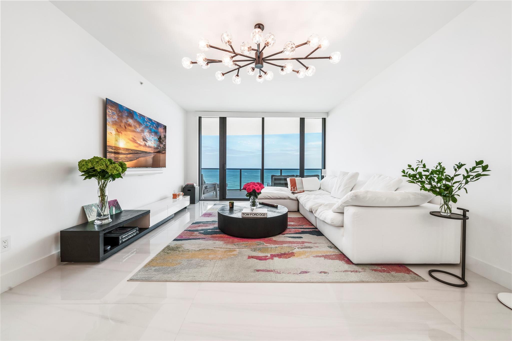 Experience luxury oceanfront living at Sabbia Beach with a private elevator to your stunning 3-bed, 2.5-bath estate. Enjoy gorgeous views from your 440ft balcony & floor to ceiling windows in every room. Upgrades include custom JL walk-in closets, high ceilings, upgraded marble floors, TOTO smart toilet, stand alone tub & custom mirrors. The sleek kitchen boasts Italian cabinets & Miele appliances. Custom smart control blinds & lightning throughout, custom JL Murphy bed & crystal chandeliers from Restoration Hardware. Luxury 5-star building with state-of-the-art amenities including a fitness center, spa, 24/7 valet, pool with cabanas, and beach service. Excellent location at the heart of Pompano Beach, near nightlife, world-class dining, shopping, airports, & easy access to main roads.
