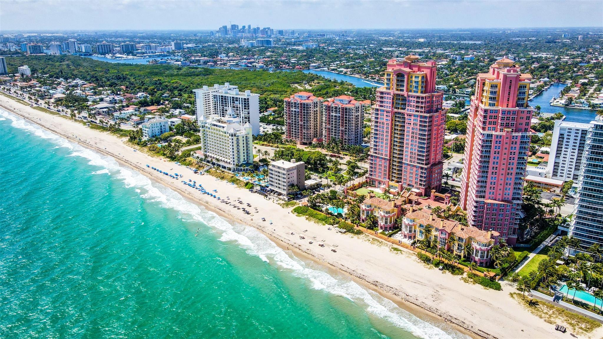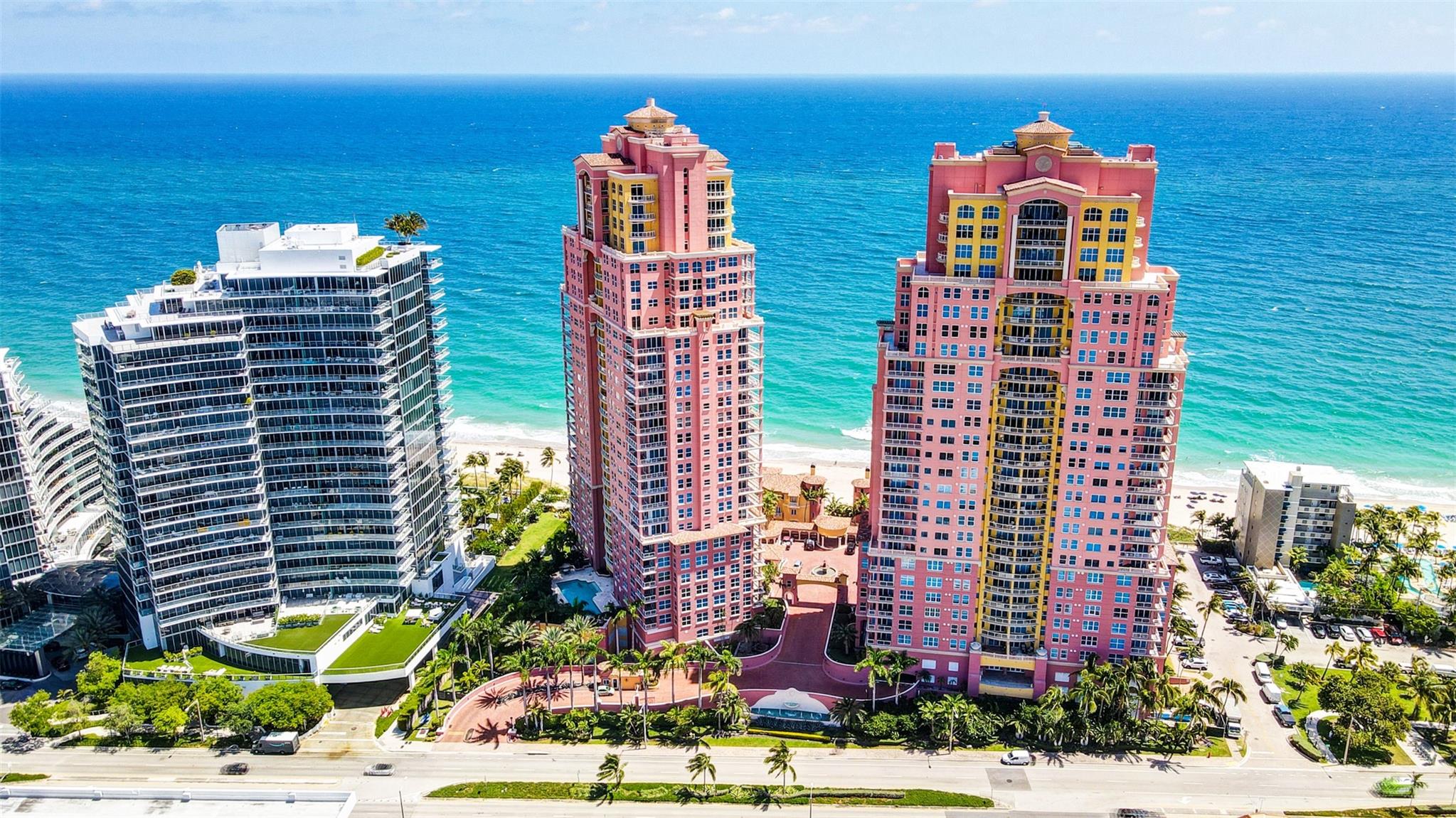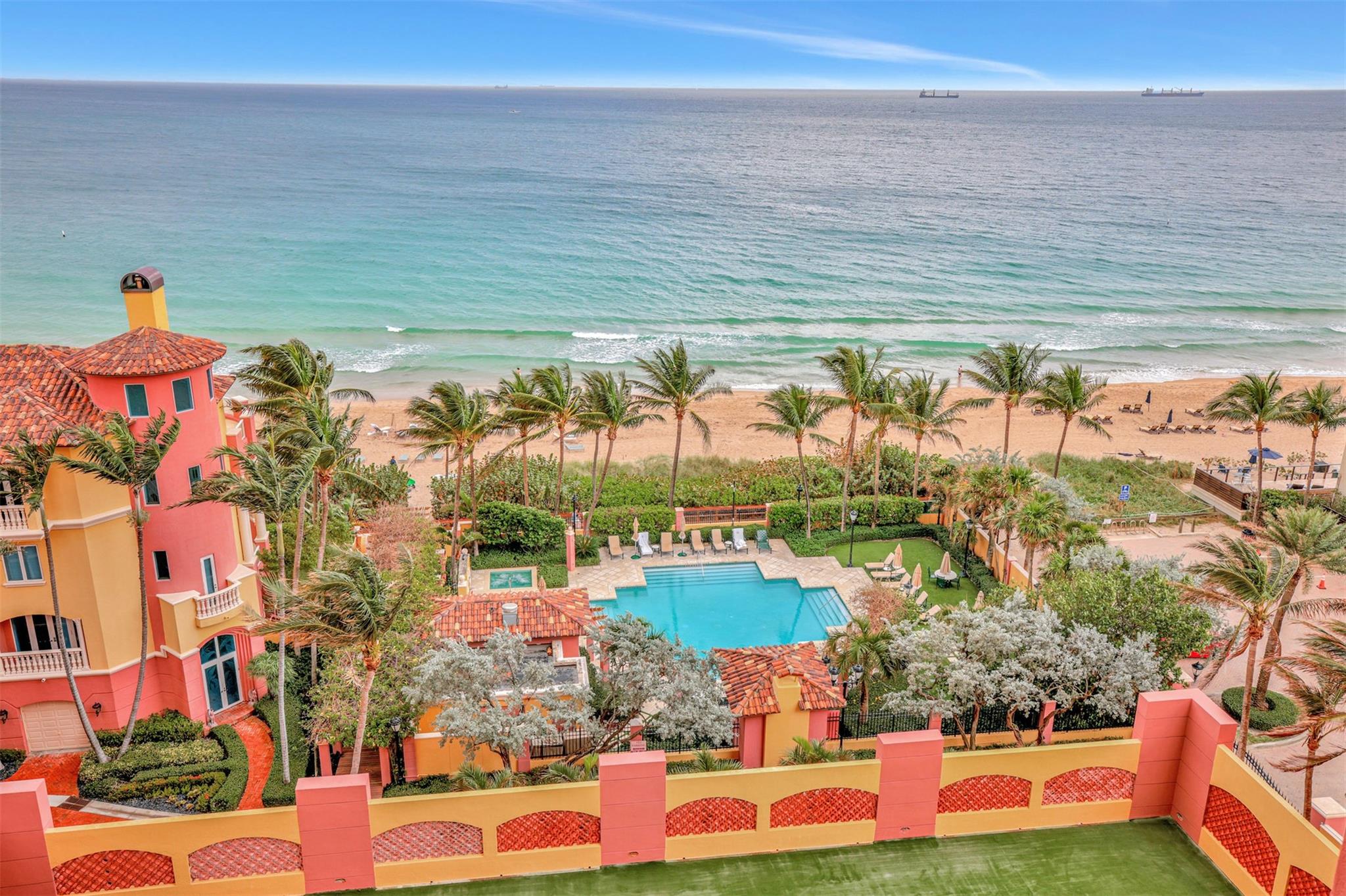 Direct Ocean View 2-bedroom, 2.5-bathroom condominium features a semi-private elevator that opens to a private foyer. Enjoy unobstructed views of the Atlantic Ocean and pool from the main living areas, while the Master and second bedroom offer captivating views of the intracoastal. The galley-style kitchen boasts a Sub Zero fridge, and the spacious Master bedroom includes a seating area, dual walk-in closets, and a master bath with dual sinks, a separate tub, and shower. The second bedroom comes with a walk-in closet and ensuite bath. Security is ensured with 24-hour guard-gated security, valet, and a concierge desk. Residents have access to a two-story gym, sauna, tennis and racquetball courts, club and party rooms, two pools, and private beachfront access.