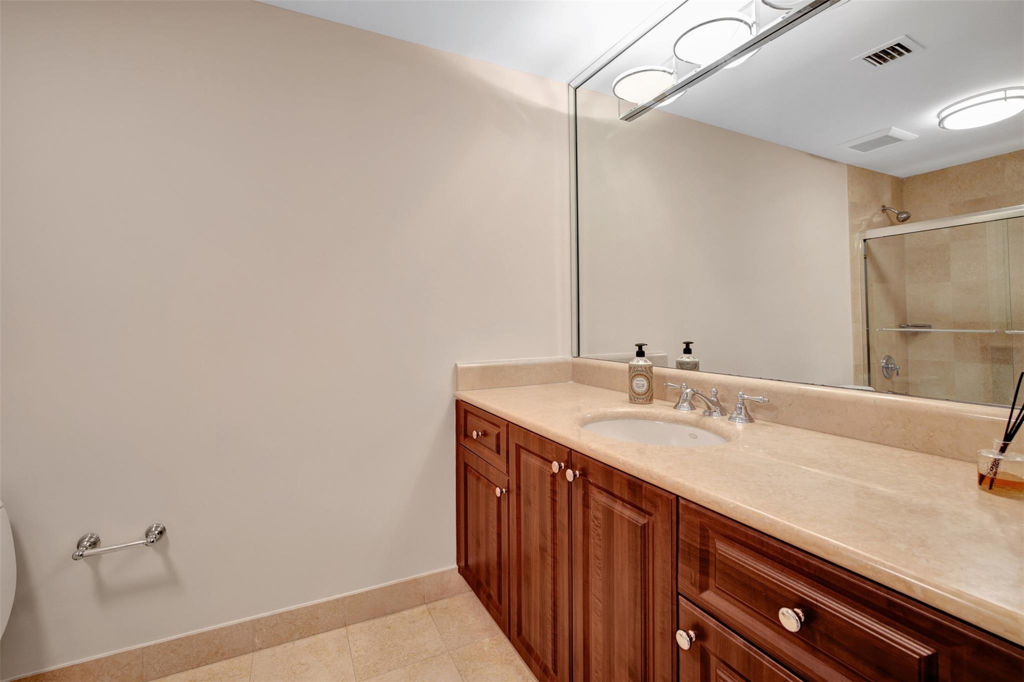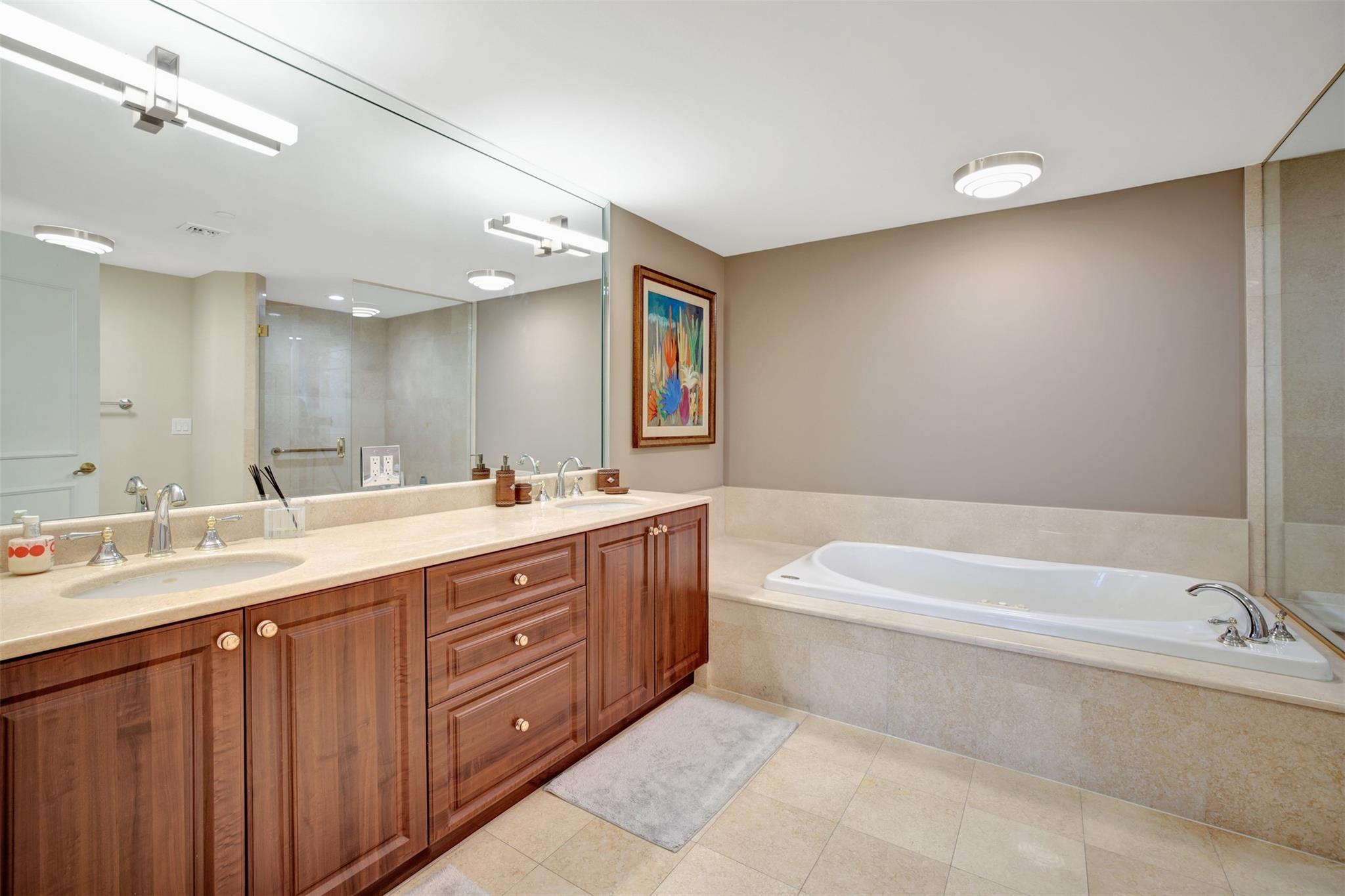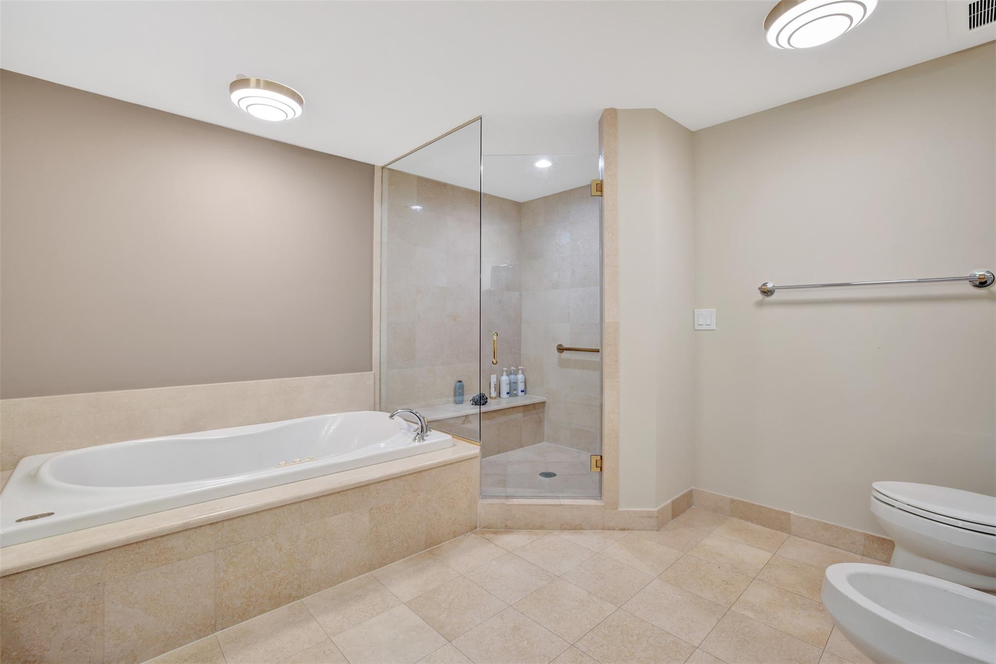 Direct Ocean View 2-bedroom, 2.5-bathroom condominium features a semi-private elevator that opens to a private foyer. Enjoy unobstructed views of the Atlantic Ocean and pool from the main living areas, while the Master and second bedroom offer captivating views of the intracoastal. The galley-style kitchen boasts a Sub Zero fridge, and the spacious Master bedroom includes a seating area, dual walk-in closets, and a master bath with dual sinks, a separate tub, and shower. The second bedroom comes with a walk-in closet and ensuite bath. Security is ensured with 24-hour guard-gated security, valet, and a concierge desk. Residents have access to a two-story gym, sauna, tennis and racquetball courts, club and party rooms, two pools, and private beachfront access.