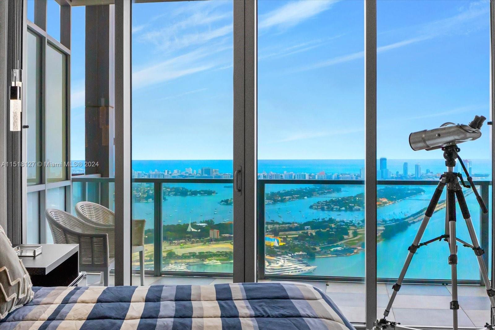 Highest floor 2 bedroom direct bay residence. This residence features two private elevator access and comes with all the upgrades. Turn-key furnished residence just bring your tooth-brush. Residence features top of the line Viking appliances, upgraded floors, millwork, cabinets, doors, kitchen and bathrooms. Stunning views to Biscayne Bay and Miami Beach. Excellent location across from Perez Museum, Science Museum, Kaseya Center, and Adriene Arsht Performing Arts Center. Building features lap and resort style pool, fitness center and spa facing the bay. Private beach club access in South Beach included in current condo fee. Developing area with Miami Signature Bridge and World Center Projects coming soon!
