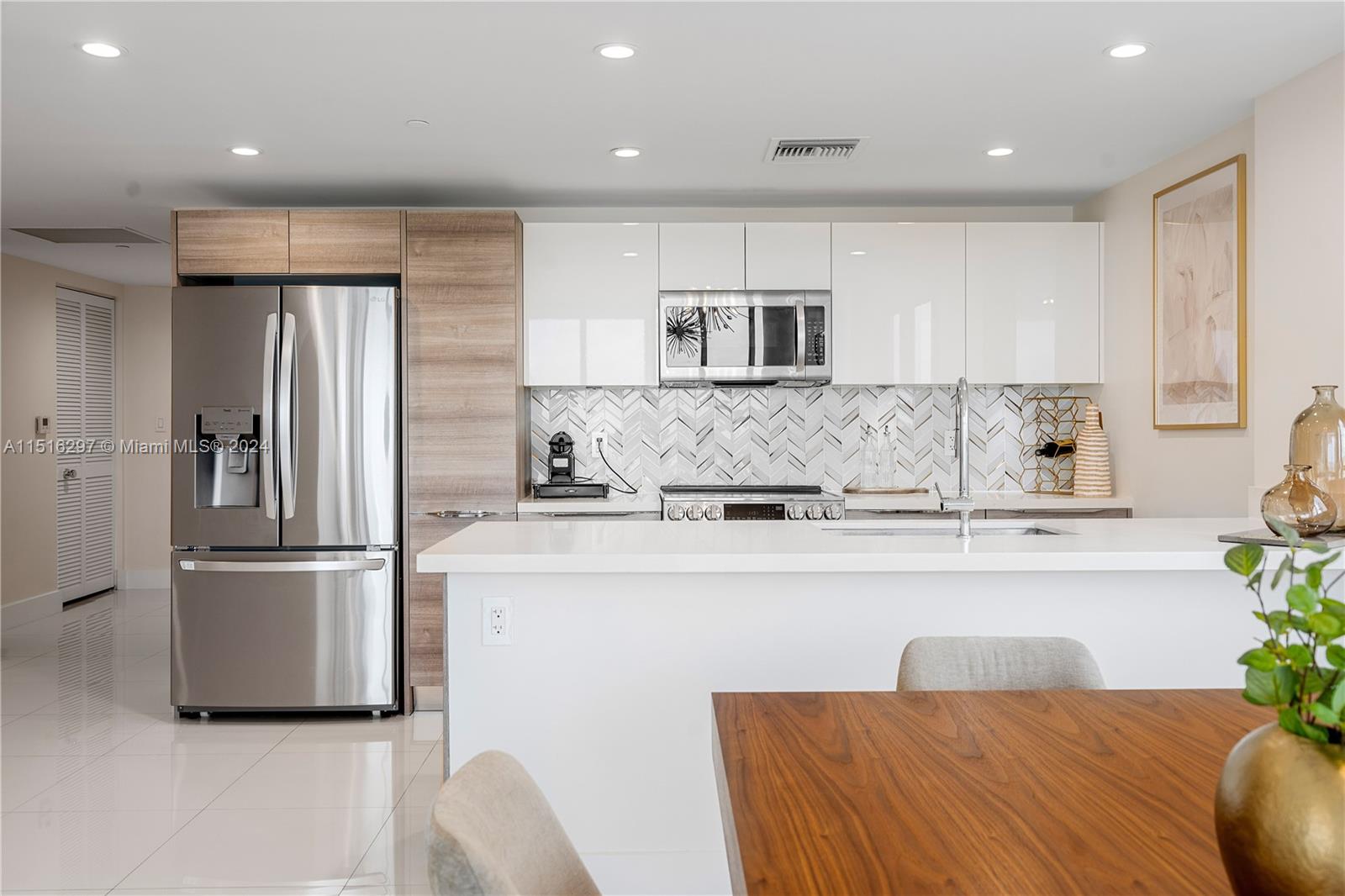 Life at Kai At Bay Harbor is truly year round vacation living! From the moment you step into this designer upgraded unit you are greeted by abundant natural sunlight that fills every corner of the condo. This spacious 1,330 sf apt features 2beds, 2full baths and a den/office space that can easily be converted to a 3rd bedroom. The open style kitchen showcases a beautiful tile backsplash and brand new LG appliances. The smart layout lends itself to comfortable & separate dining and living areas. Step onto the terrace to breathe in the expansive water and city views. Bldg amenities include: fitness center, rooftop deck with magnificent infinity edge pool, hot tub, lounge and bbq area, 24 hr front desk & concierge. Conveniently located near shops, restaurants, Bal Harbor Shops & the beach.
