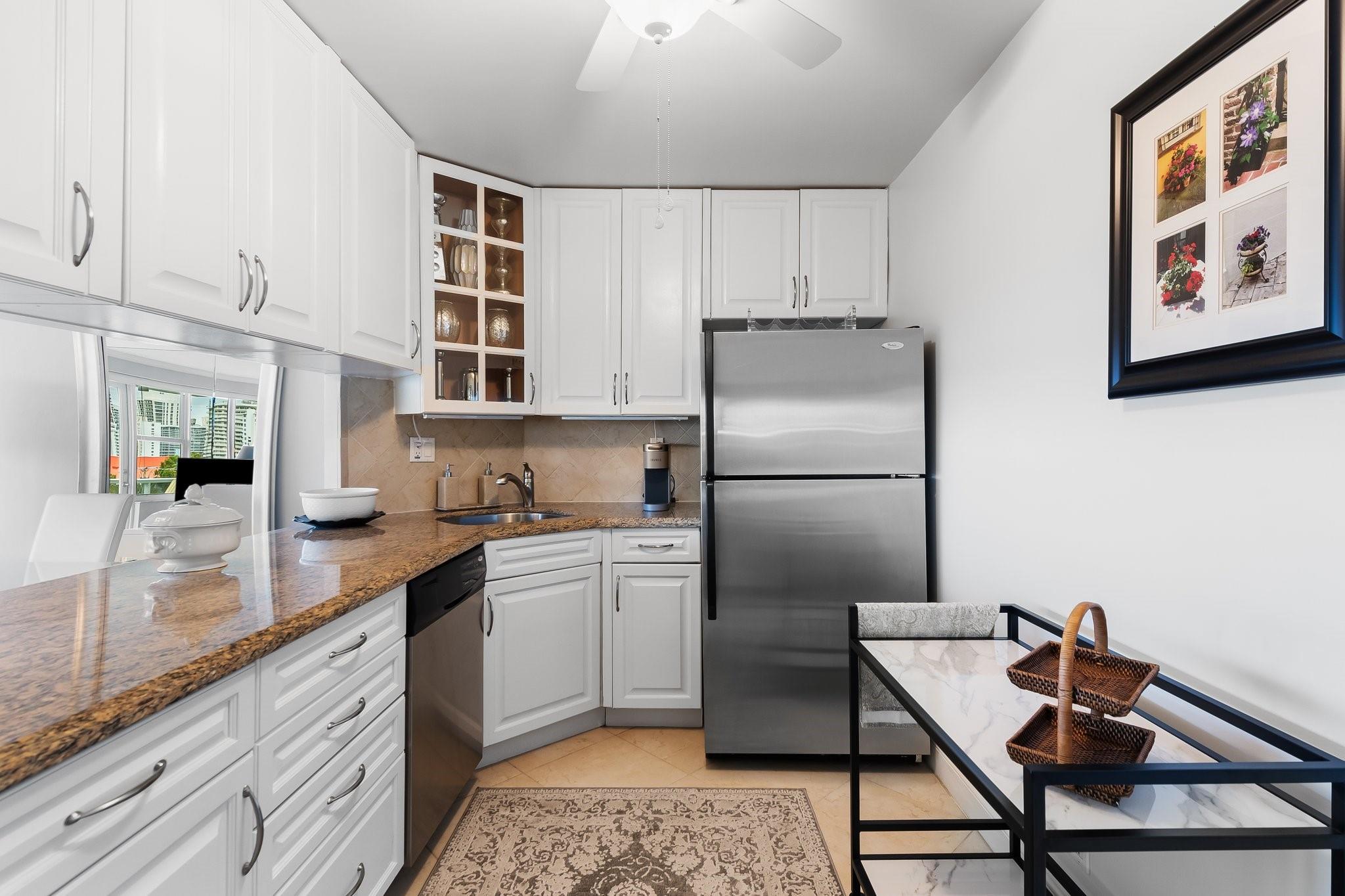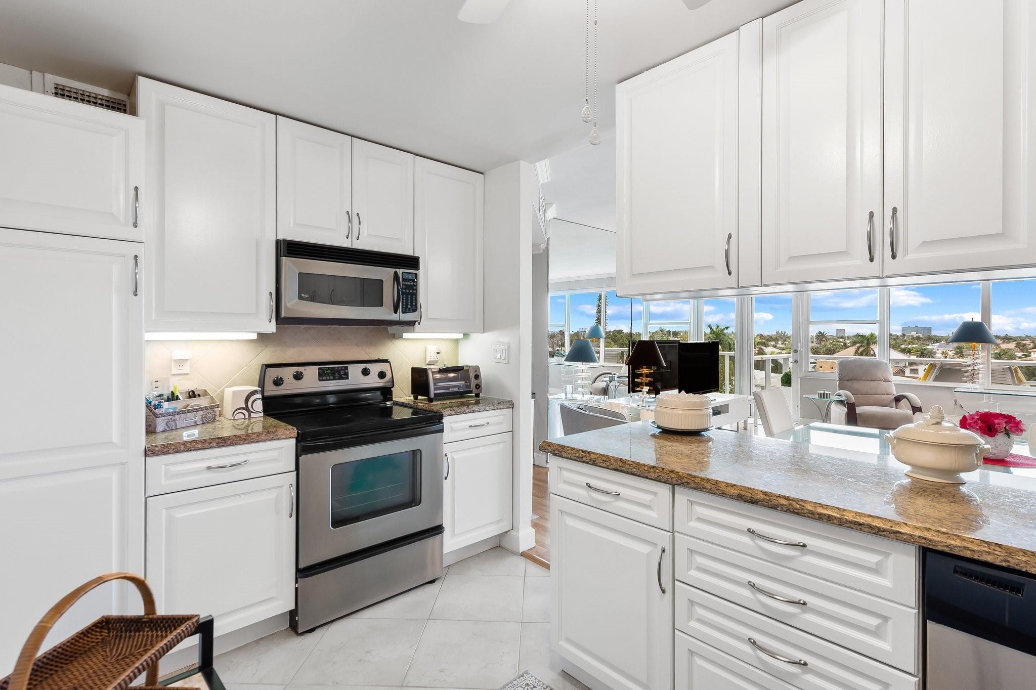 Experience coastal luxury in this stunning 2-bedroom residence located just steps from the beach. The kitchen is a chef's dream, featuring stainless steel appliances and granite countertops. Spacious living/dining area is perfect for entertaining, while the master bedroom surprises with a bonus window and extra space for lounging or home office. Amenities include a clubhouse directly on the intracoastal, heated pool, bocce ball, fitness center, and 24/7 security. Situated in a prime location near the beach, shopping, restaurants, golf and more, this property is a must-see for those seeking a blend of elegance and convenience. Building is A+ insurance rated, fully funded reserves, physically & financially sound, all work completed and paid for. Internet & cable included in maintenance.