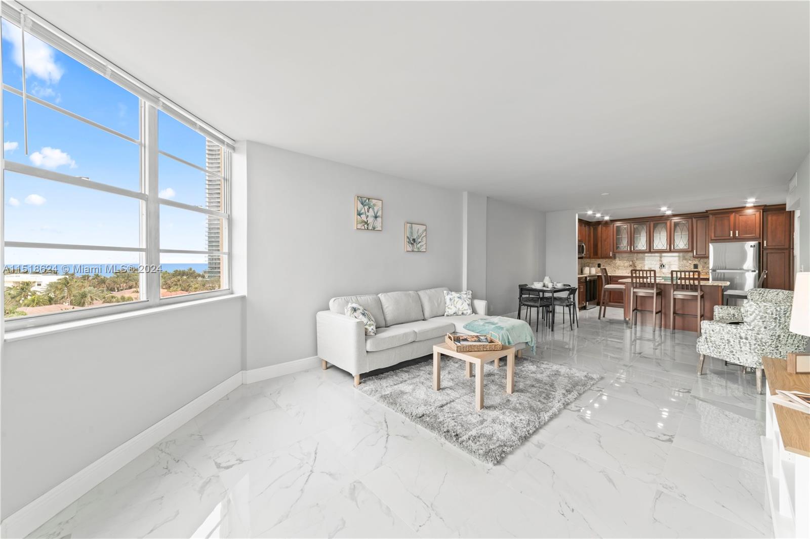 Explore the most affordable 2-bedroom gem in the building, spanning 1,526 sq ft! Perfect as a second home or investment property with permitted vacation rentals. This furnished corner unit boasts 2 beds, 2 baths, and over 1500 sq ft of upgraded luxury. Recently renovated, it features stylish porcelain floors, a modern kitchen with granite countertops, and stainless steel appliances. Delight in the privacy of your balcony, offering stunning views of both the ocean and the bay. Located in a rental-friendly building with amenities like a gym, pool, convenience store, cafeteria, and tennis courts. Airbnb-approved, this property allows for seasonal, daily, or short-term rentals, providing an opportunity to live near the beach with access to excellent amenities.