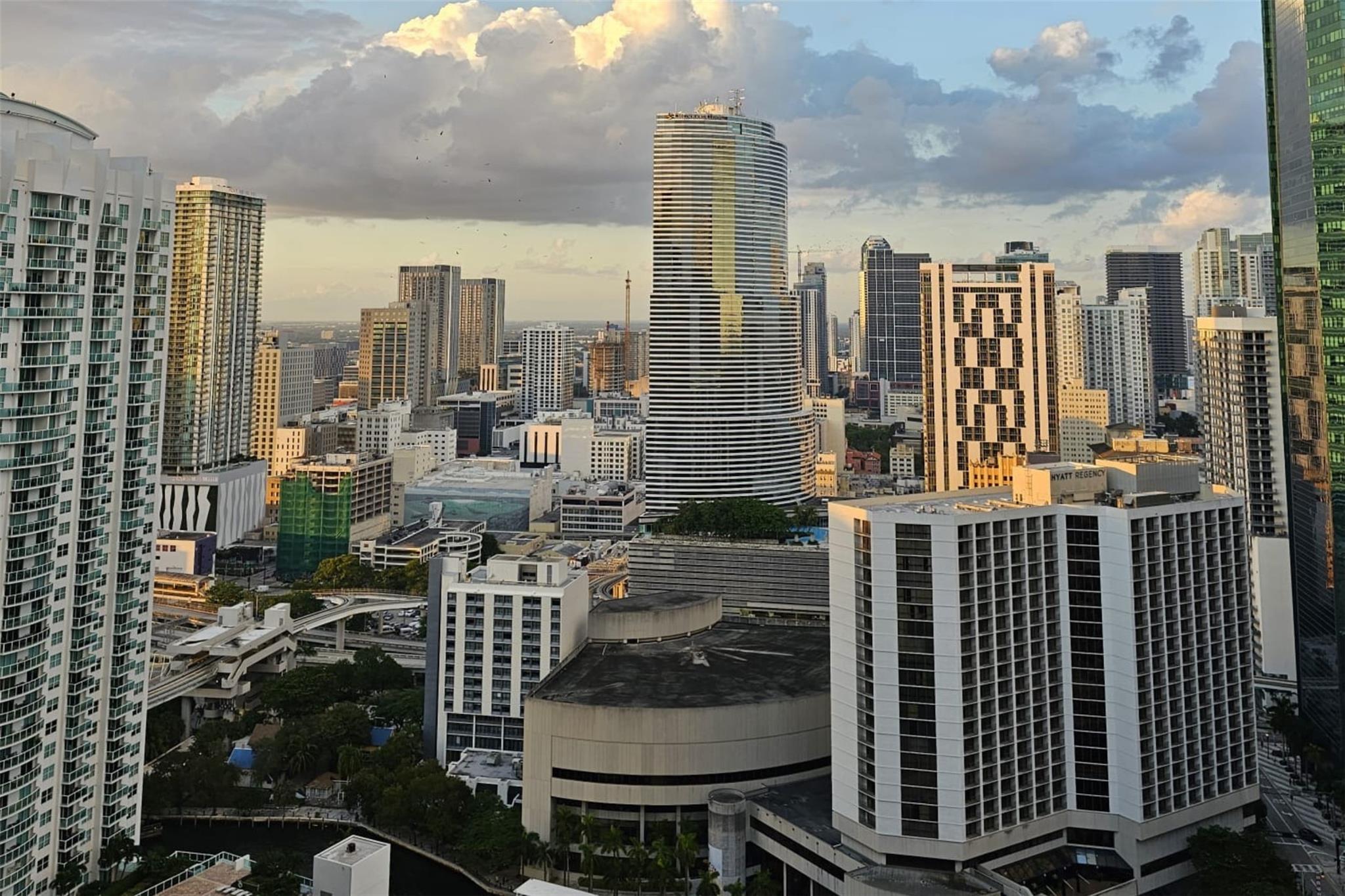 Discover urban sophistication at 500 Brickell! This 2-bed, 2-bath condo epitomizes Miami luxury. Upon entering, you are greeted by an open-concept living space with terrazzo stone floors, floor-to-ceiling windows, a new AC, along with a top of the line LG washer dryer combo. The sleek kitchen features stainless steel appliances, quartz countertops, and ample cabinet space, making it a chef's delight. Both bedrooms feature views of downtown not to mention the private balcony offers a retreat with stunning skyline views. Building amenities include a fitness center, a rooftop pool, clubroom, sauna and steam rooms, hot tub, theater room, wine cellar, and valet parking. Live in the heart of Brickell, surrounded by top dining and entertainment.