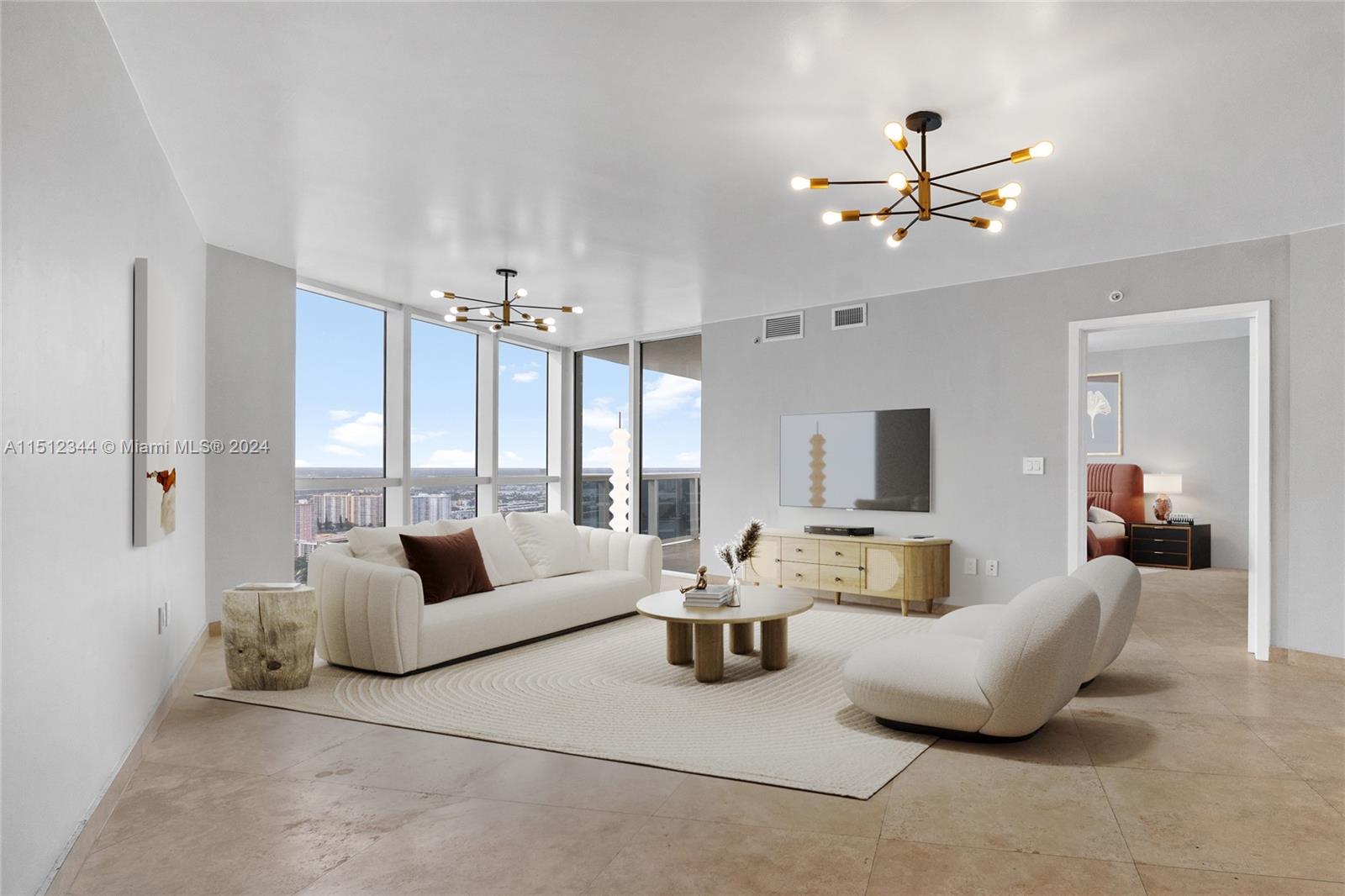 Exquisite PH at Trump Royale. Views from the ocean and the bay, in this 1-bedroom, 1.5-bathroom residence offers an amazing living experience. Step inside to a Italian kitchen, with top-of-the-line appliances, complemented by floor-to-ceiling windows that showcase the breathtaking views. Elegant marble floors add a touch of sophistication to every step. Embrace beach living at its finest, with Trump's signature 5-star resort-style amenities. Delight your palate at on-site restaurants, beach service, or refresh in the pools. Engage in a game of tennis, rejuvenate your senses at the luxury spa, and maintain your fitness routine in the well-equipped gym.