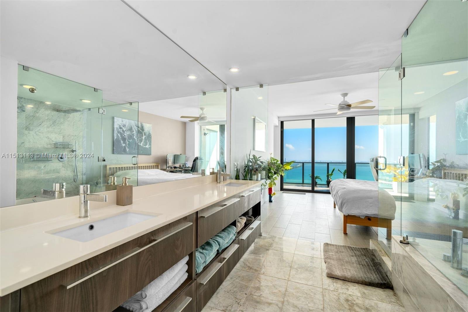 A beautifully finished 3 Bed+Den/3.5 Bath flow-through residence at One Paraiso w/ 1,526 int sq ft + 2 balconies totaling 354 sq ft. Features include porcelain tiled flooring throughout, built-in closets in all bedrooms, motorized shades, recessed lighting w/ Phillips hues bulbs, new AC unit (installed Jun 2021), new washer & dryer, NEST thermostat, and smart door lock. Breathtaking views of Biscayne Bay, Atlantic Ocean, and Miami Beach skyline from 41st floor. Amenities include a state-of-the-art fitness center, 3 pools, hot tub, BBQ, lighted tennis courts, business center, theater, children's playroom, full-service concierge, and more. Within walking distance of the upcoming Whole Food Market and short drive to the shops, restaurants, and entertainment in Wynwood & Miami Design District.