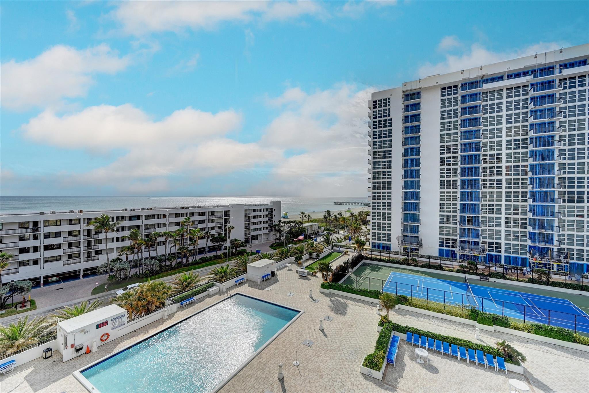 Views! Views! Views! Amazing southeast direct ocean views of ocean, beach and pool area. Kitchen with white cabinetry, split floor plan, guest bedroom has accordion door separation to provide privacy or open to living room for a spacious den/family room. Floor to ceiling hurricane impact windows and slider, two walk in closets. Silver Thatch offers 24/7 security, garage parking, heated pools, tennis, pickleball courts, bocce, fitness center, sauna and new covered barbecue area. Prime location steps from the fishing pier, restaurants, shopping, boating, golf, and more.